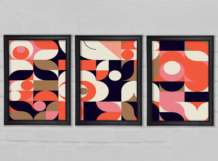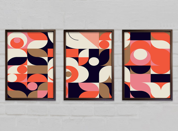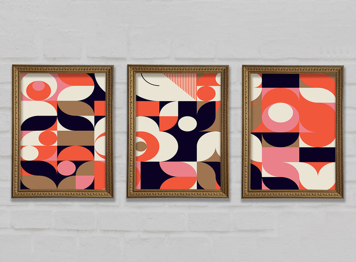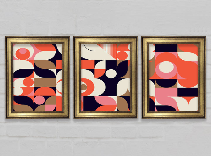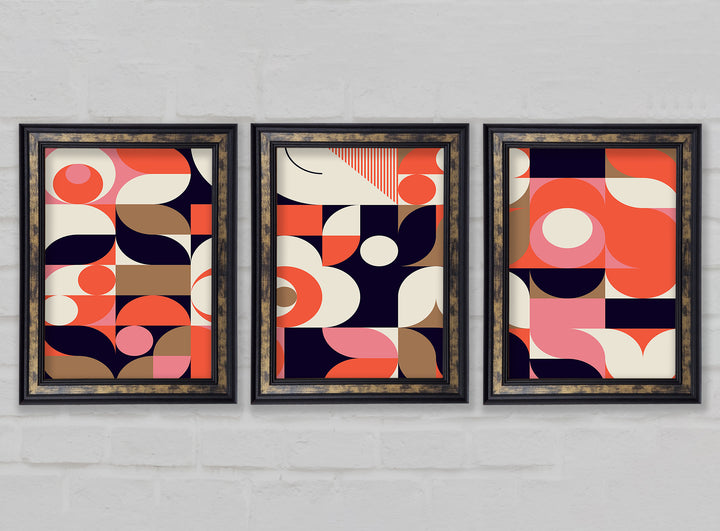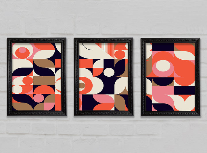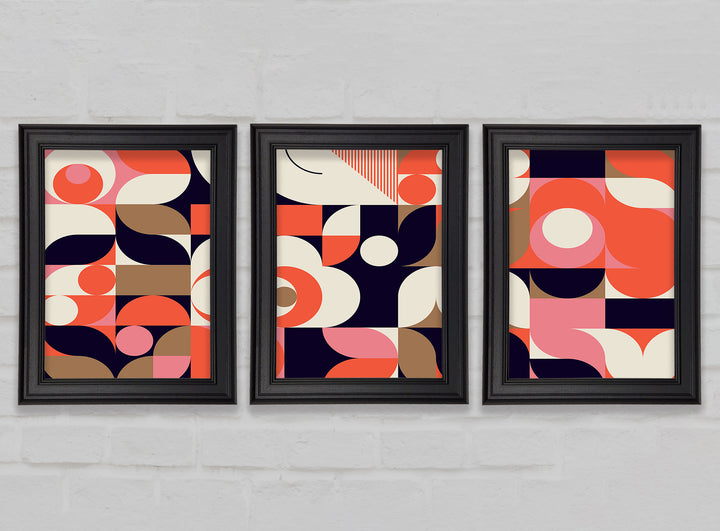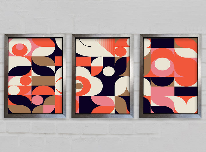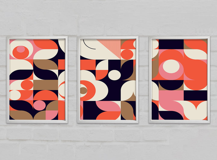 Modern Shapes set of 3 framed print wall art, available in mutiple frame colours. Ready to hang from the box and handmade in the United Kingdom.