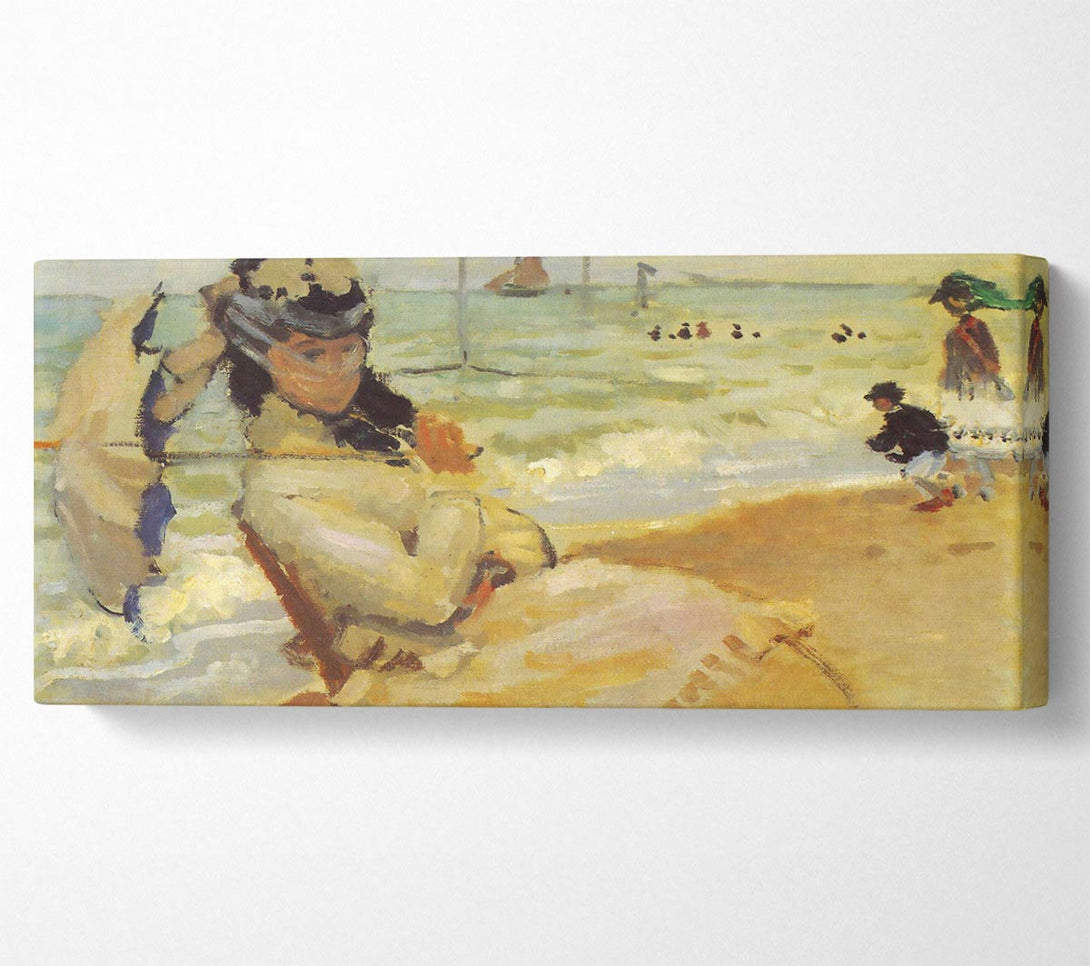 Monet Camille On The Beach At Trouville canvas, printed on coated polyester canvas. Mounted on to a 44mm box frame, ready to hang.