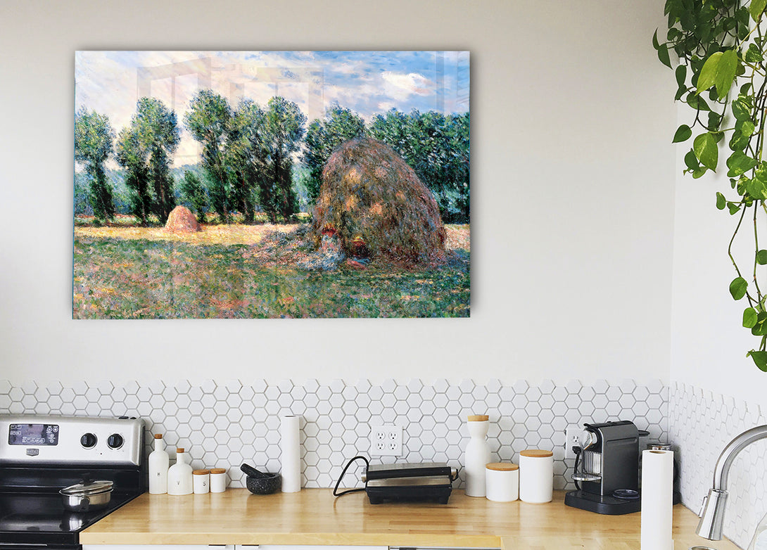 Monet Haystacks acrylic print, UV printed onto 5mm thick acrylic glass. Comes with everything you need to hang on your wall.