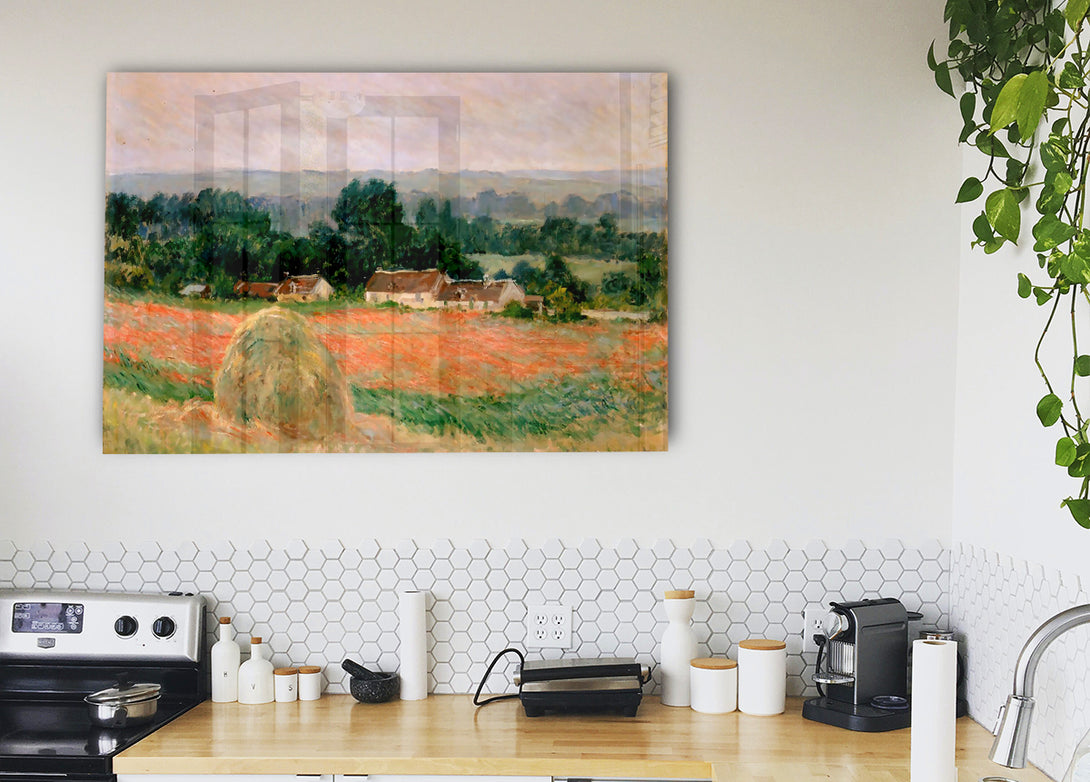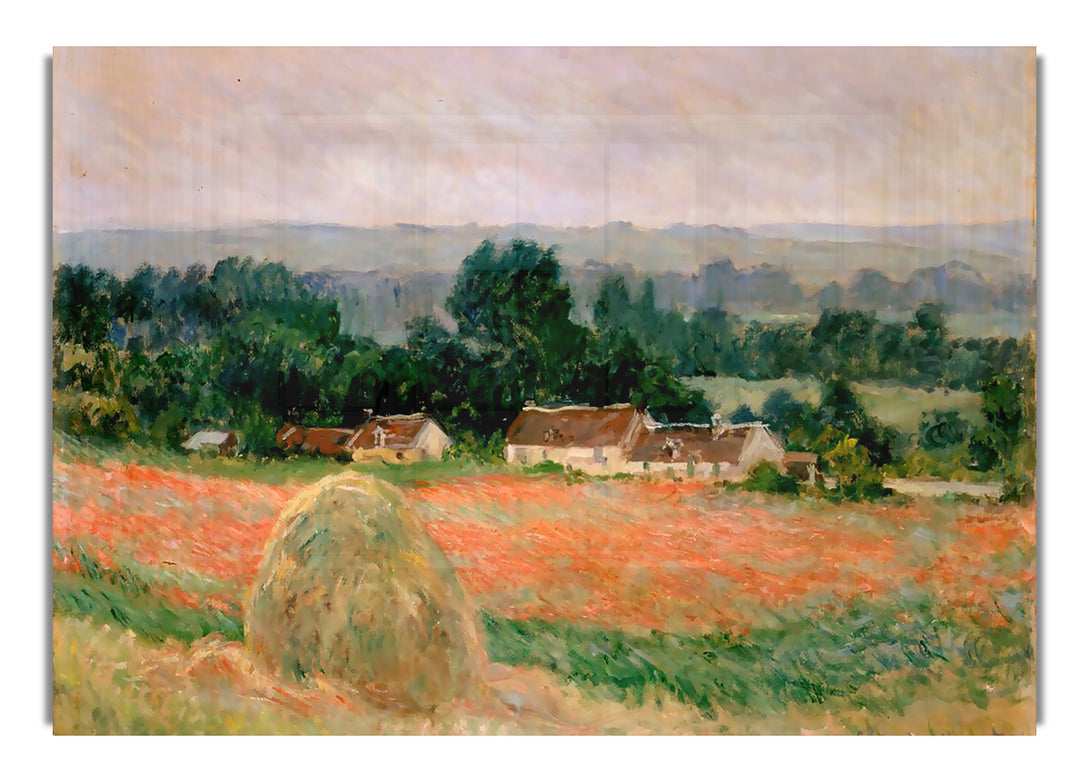 Monet Haystacks At Giverny acrylic print, UV printed onto 5mm thick acrylic glass. Comes with everything you need to hang on your wall.