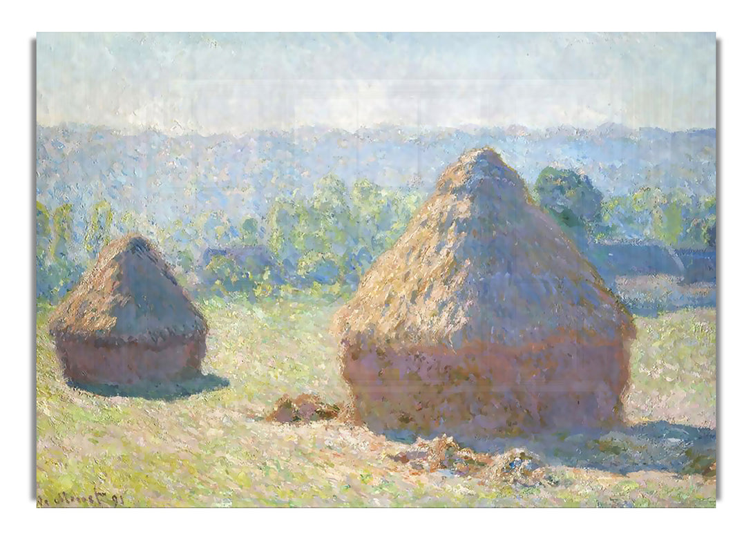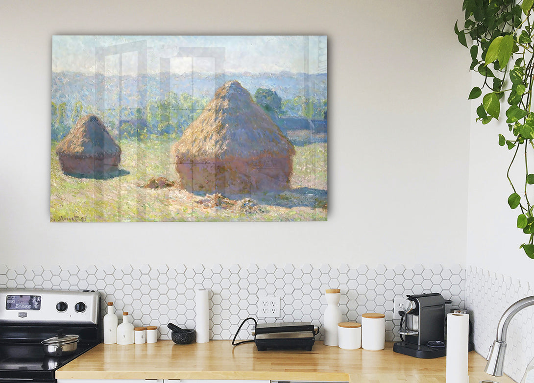 Monet Haystacks, End Of Summer acrylic print, UV printed onto 5mm thick acrylic glass. Comes with everything you need to hang on your wall.