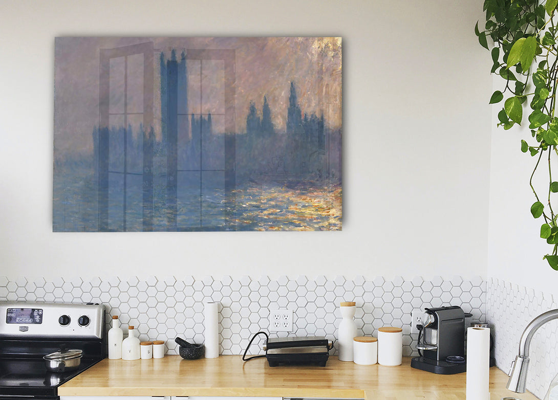 Monet Houses Of Parliament acrylic print, UV printed onto 5mm thick acrylic glass. Comes with everything you need to hang on your wall.