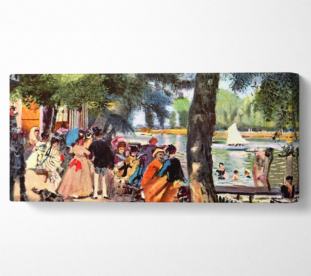 Monet La Grenouillere canvas, printed on coated polyester canvas. Mounted on to a 44mm box frame, ready to hang.