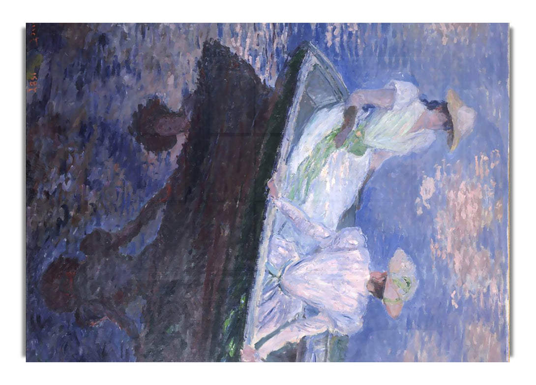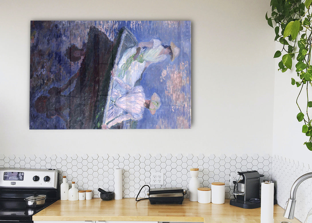 Monet On The Boat acrylic print, UV printed onto 5mm thick acrylic glass. Comes with everything you need to hang on your wall.