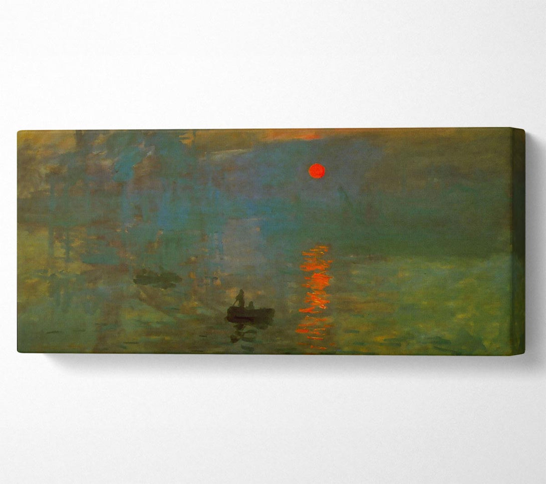 Monet Sunrise canvas, printed on coated polyester canvas. Mounted on to a 44mm box frame, ready to hang.