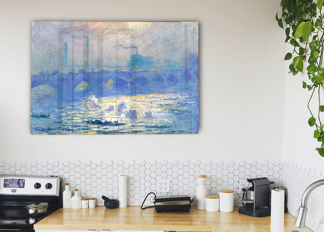 Monet Waterloo Bridge acrylic print, UV printed onto 5mm thick acrylic glass. Comes with everything you need to hang on your wall.