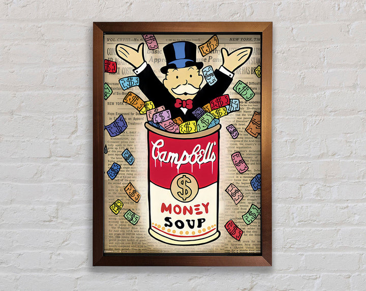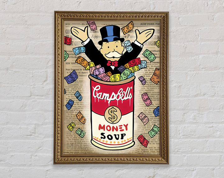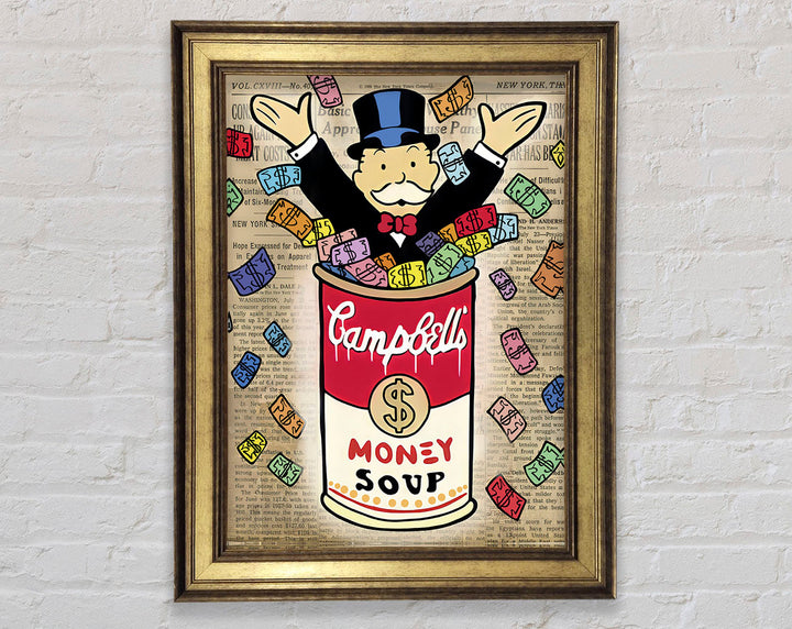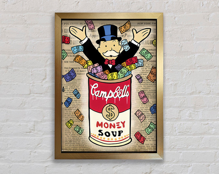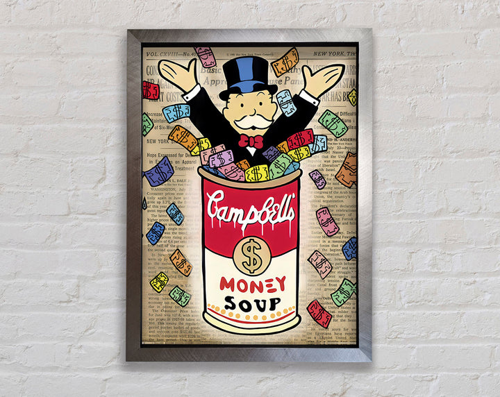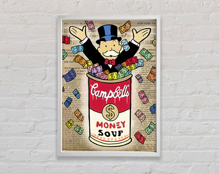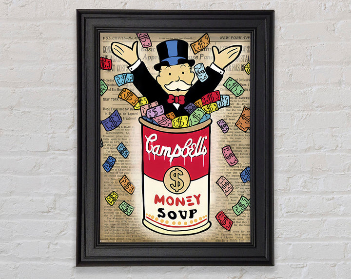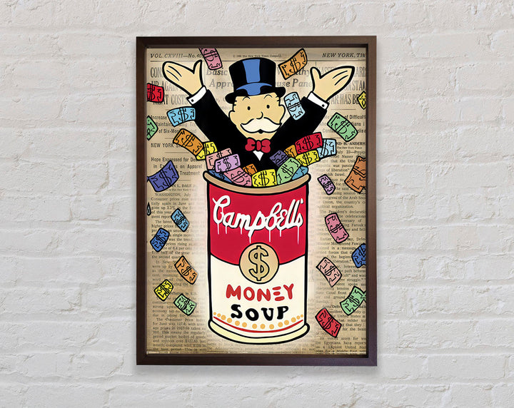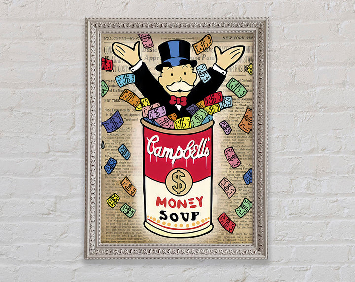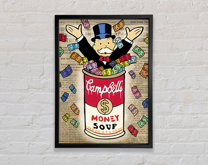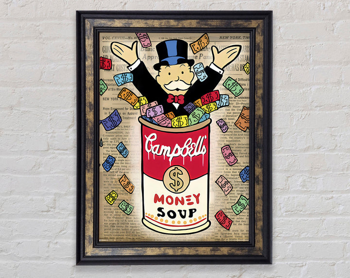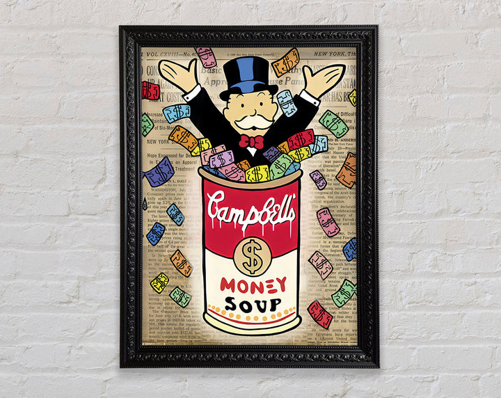Introducing the Money Soup Framed Print, a stunning piece of framed art that adds a touch of elegance to any room. This unique artwork is available in six different sizes, ranging from small to oversized, ensuring a perfect fit for any space. Choose from a variety of colors to match your decor. Each print is meticulously handmade in the United Kingdom, guaranteeing top-notch quality and craftsmanship. Ready to hang right out of the box, the Money Soup Framed Print makes decorating effortless. Enhance your home or office with this eye-catching piece that combines artistic flair with sophisticated design.