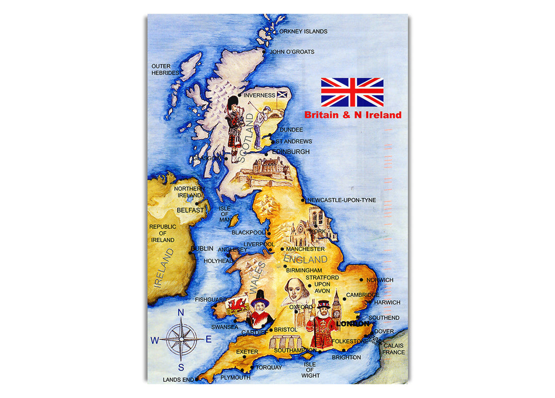 Monuments Of England Map acrylic print, UV printed onto 5mm thick acrylic glass. Comes with everything you need to hang on your wall.
