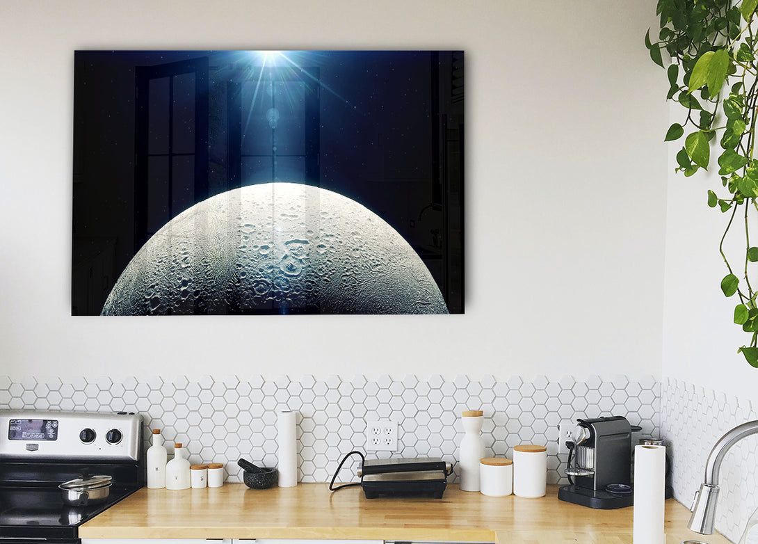 Moon In Space acrylic print, UV printed onto 5mm thick acrylic glass. Comes with everything you need to hang on your wall.