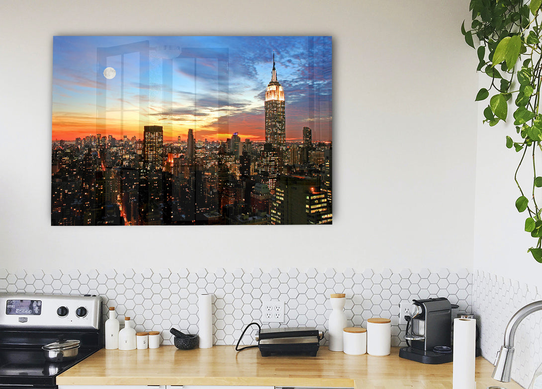 Moonlit Empire State Building acrylic print, UV printed onto 5mm thick acrylic glass. Comes with everything you need to hang on your wall.