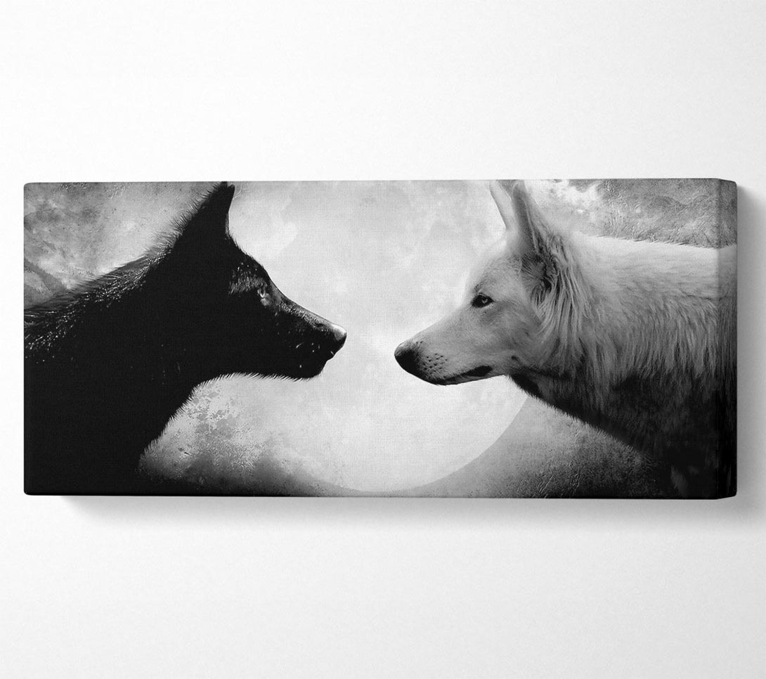 Moonlit Wolves canvas, printed on coated polyester canvas. Mounted on to a 44mm box frame, ready to hang.