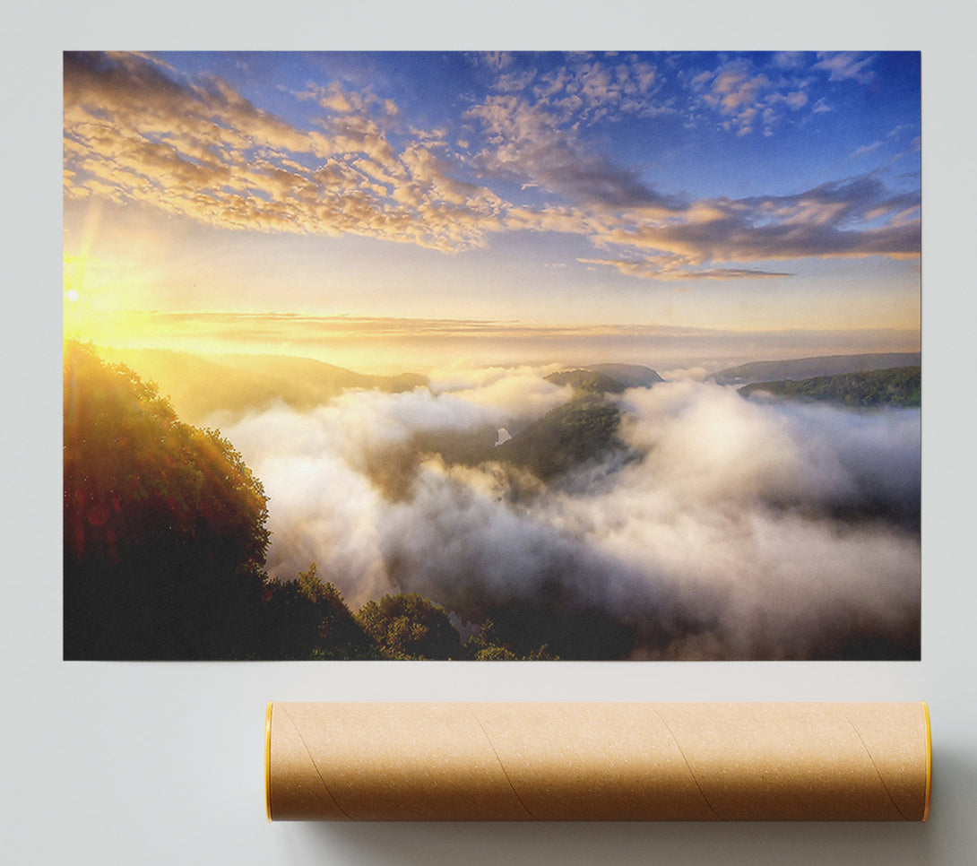 Our Morning Mist Over The Forest Poster is printed 260 GSM premium lustre paper that offers vibrant colours and exceptional detail.