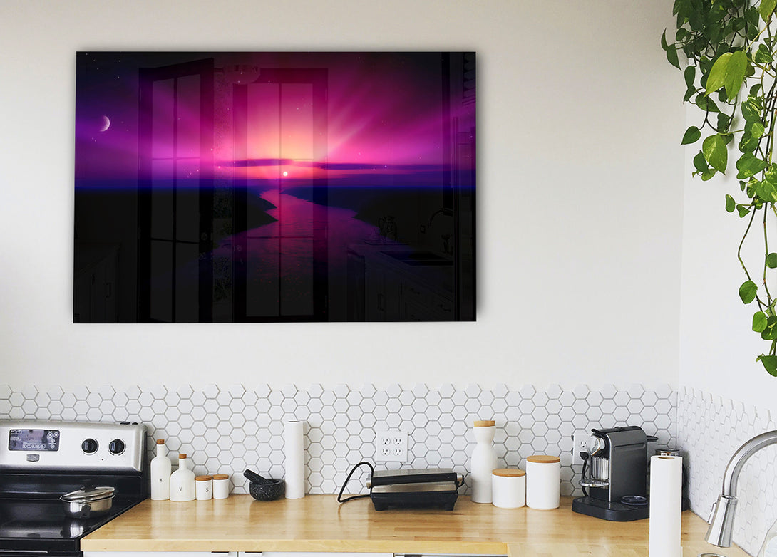 Morning Purple Sunrise acrylic print, UV printed onto 5mm thick acrylic glass. Comes with everything you need to hang on your wall.