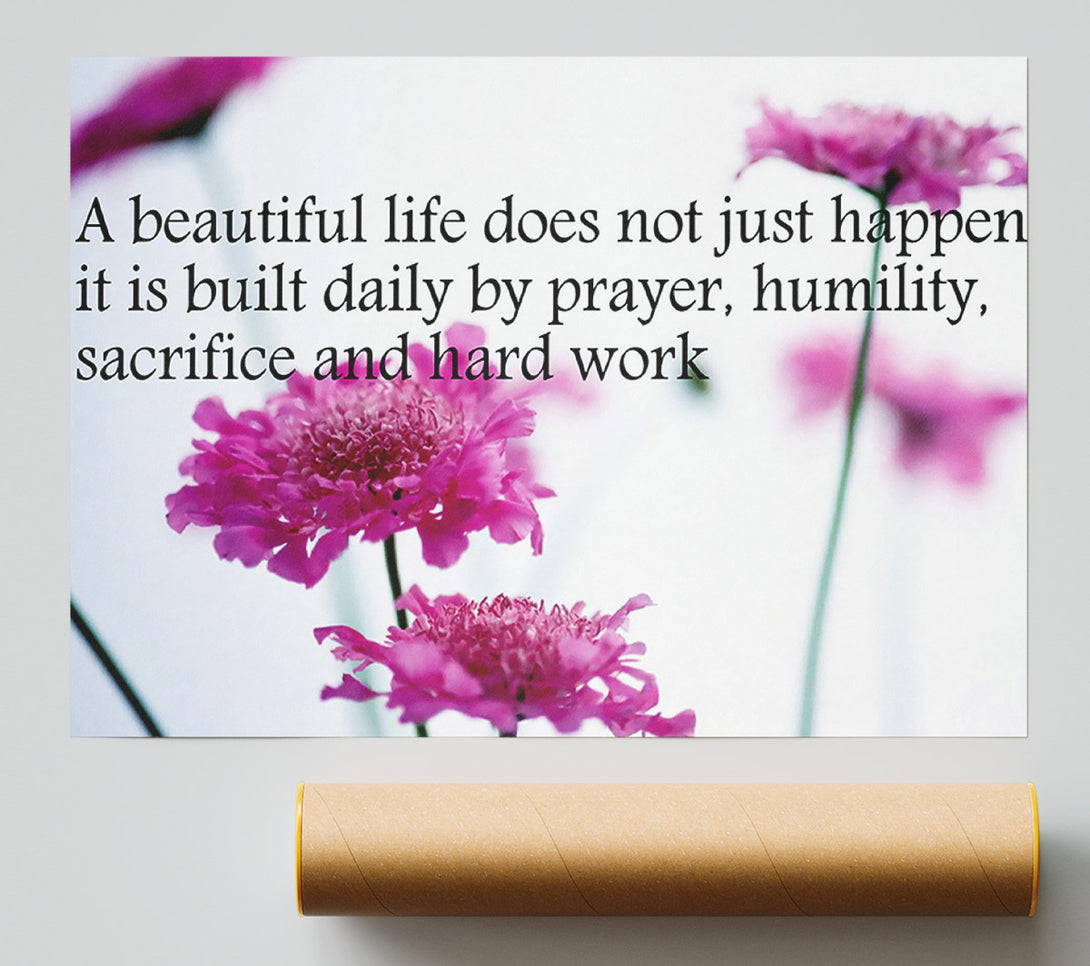 Our Motivational Quote A Beautiful Life Does Not Just Happen Poster is printed 260 GSM premium lustre paper that offers vibrant colours and exceptional detail.