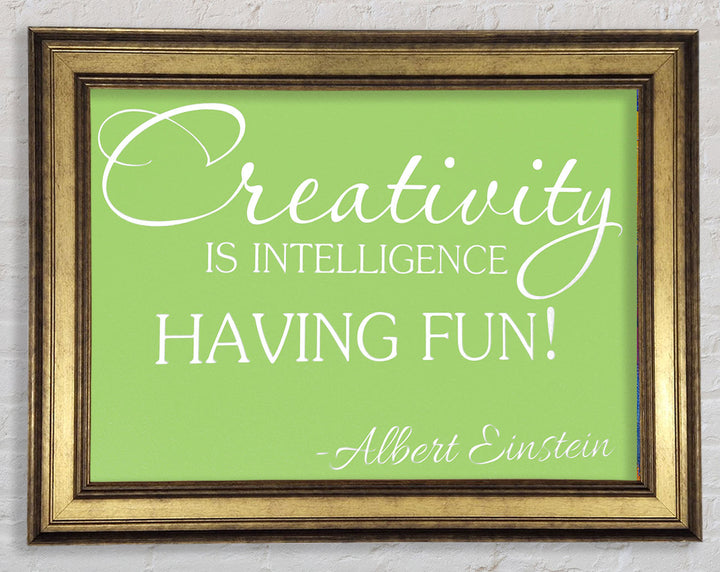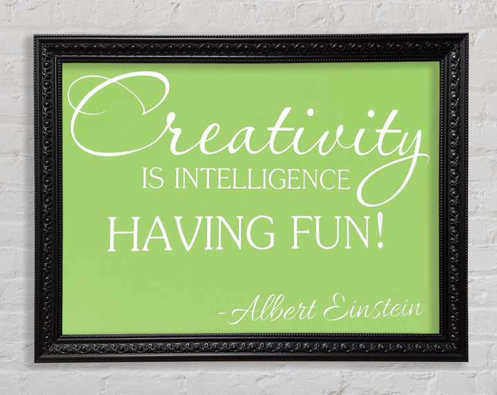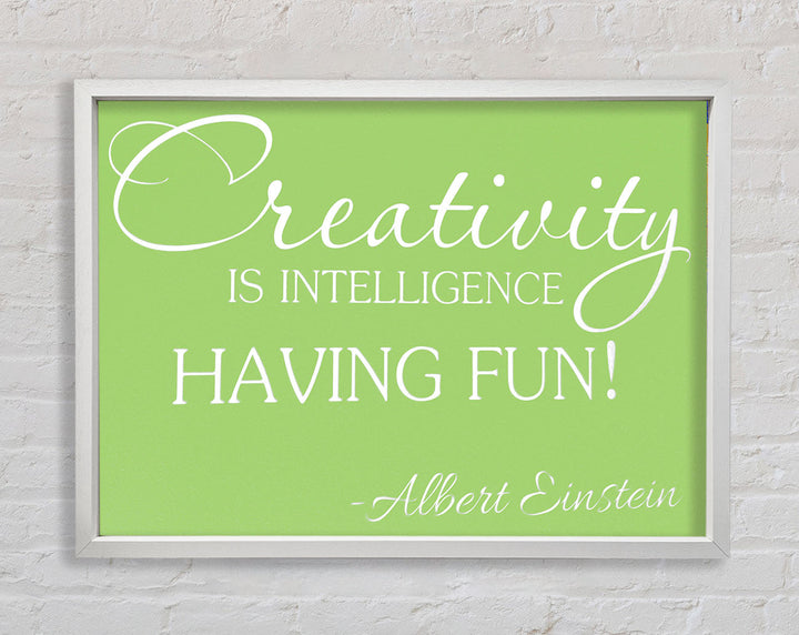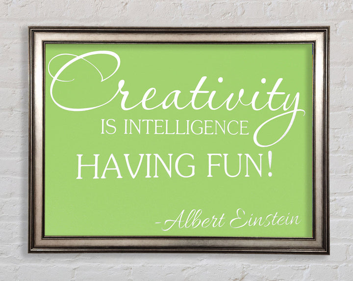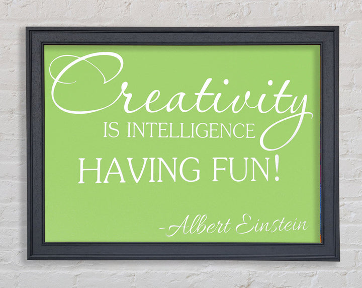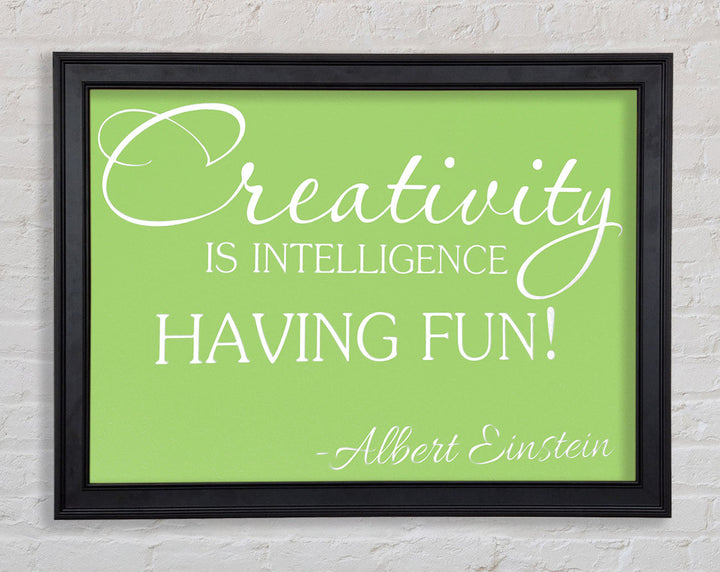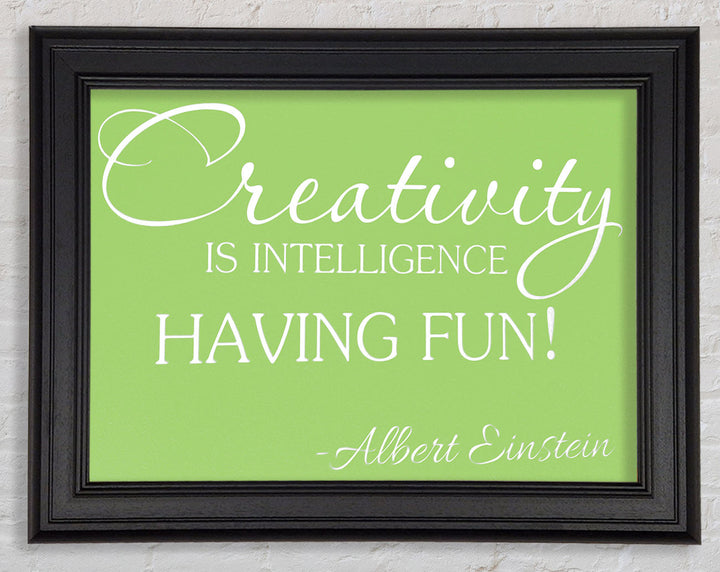 Motivational Quote Albert Einstein Creativity Is Intelligence Lime Green Framed Print