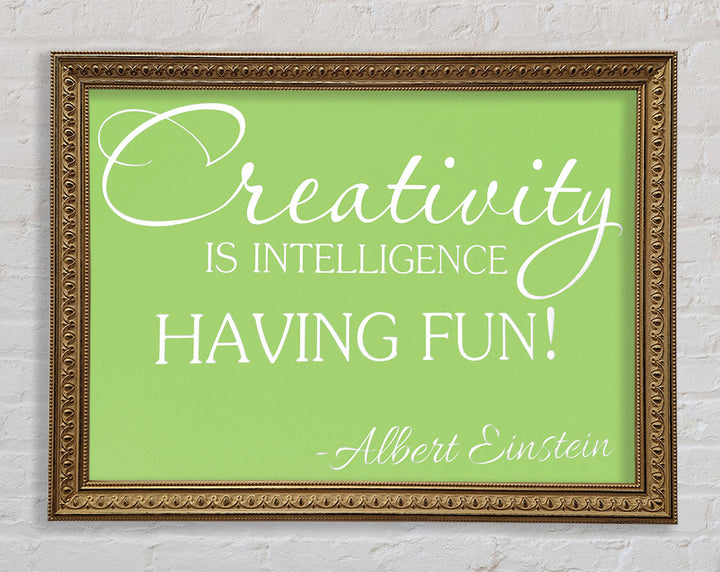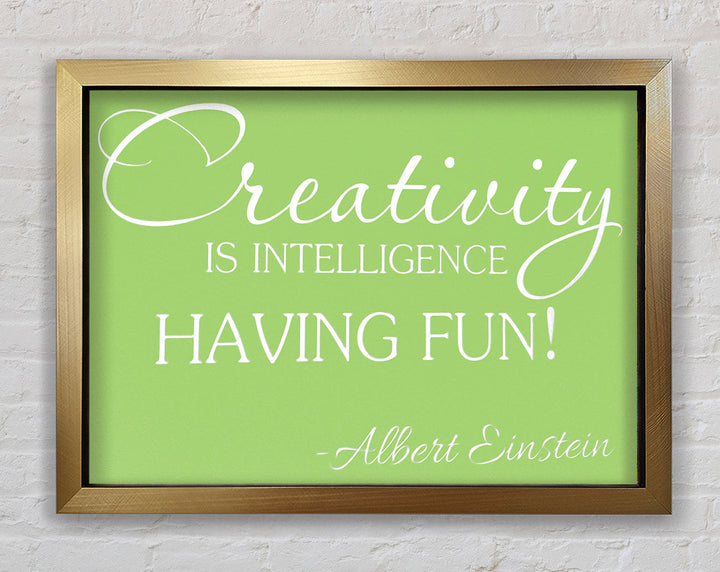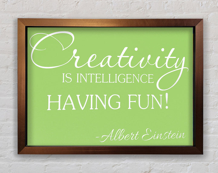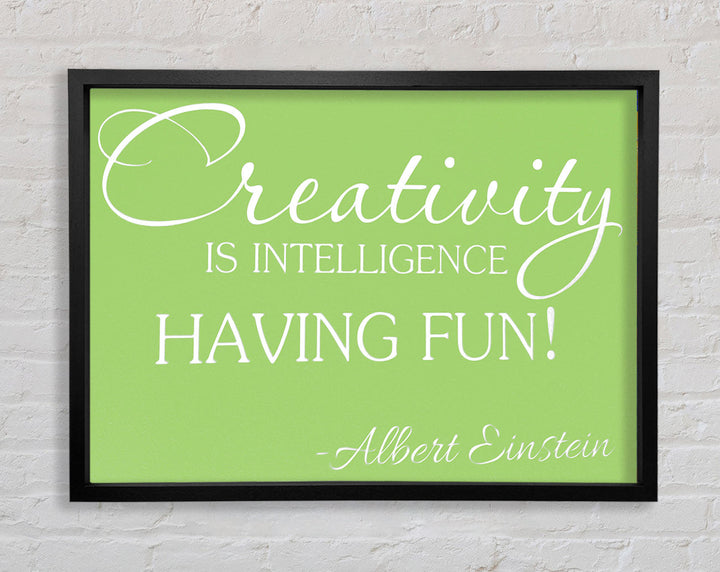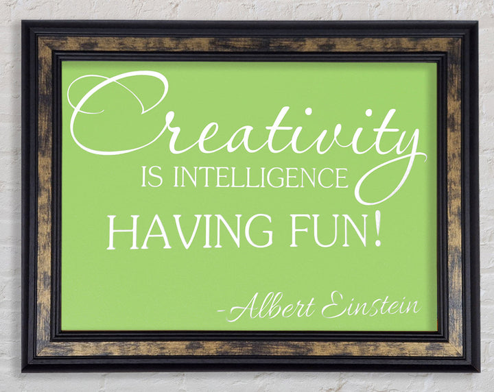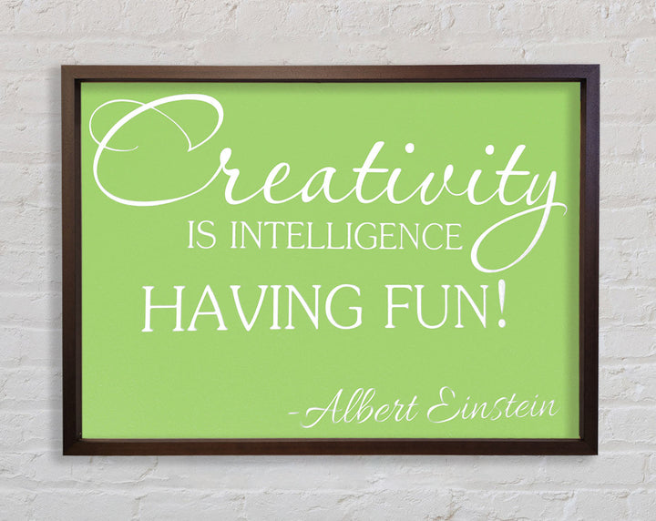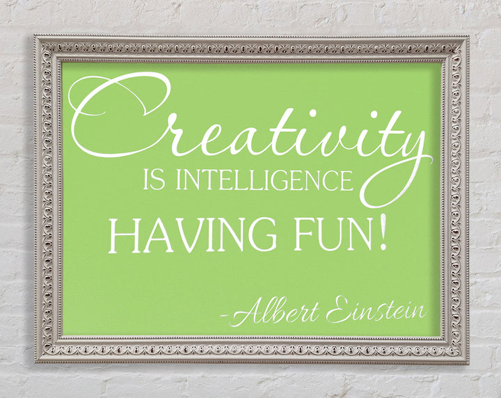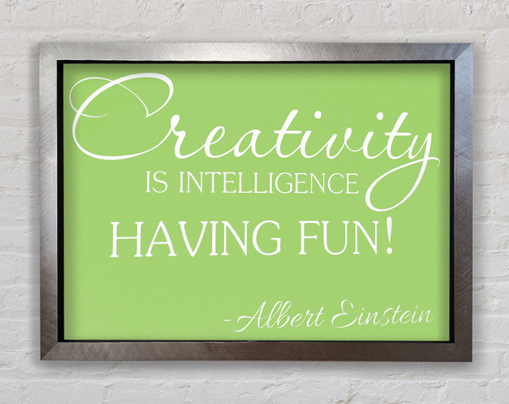 Motivational Quote Albert Einstein Creativity Is Intelligence Lime Green Framed Print