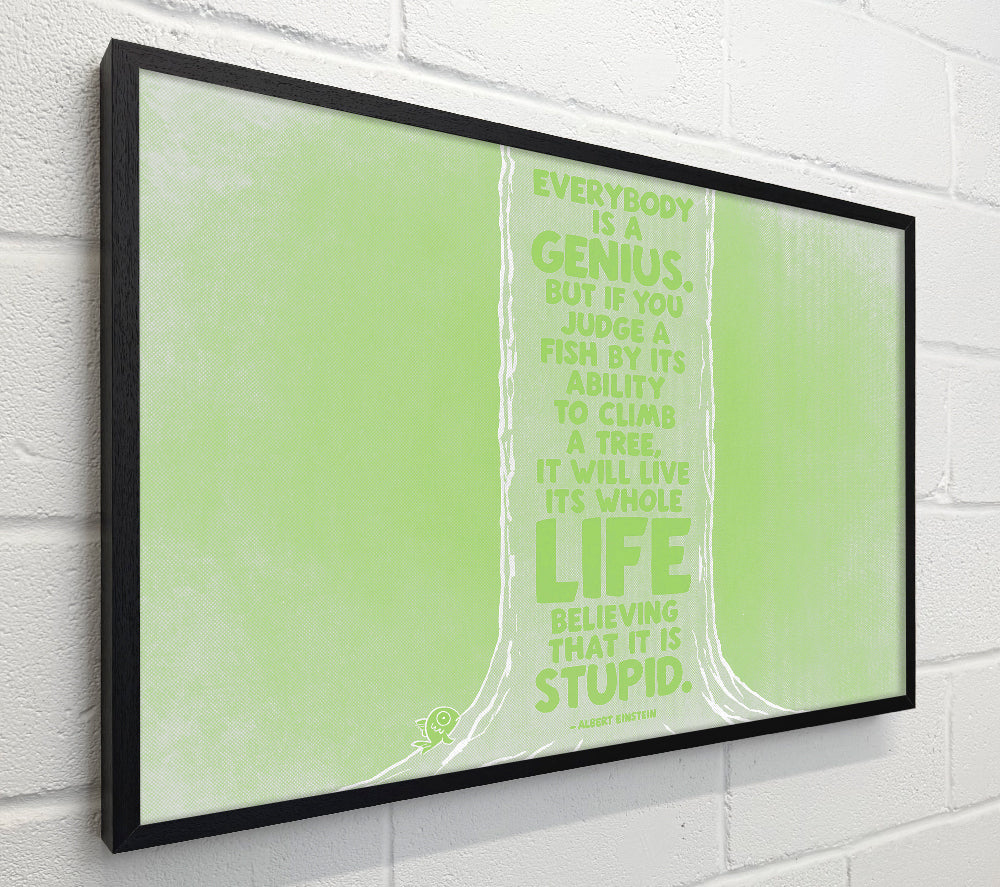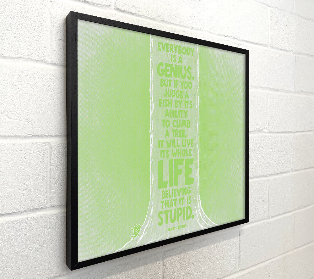 Motivational Quote Albert Einstein Everybody Is A Genius Lime Green