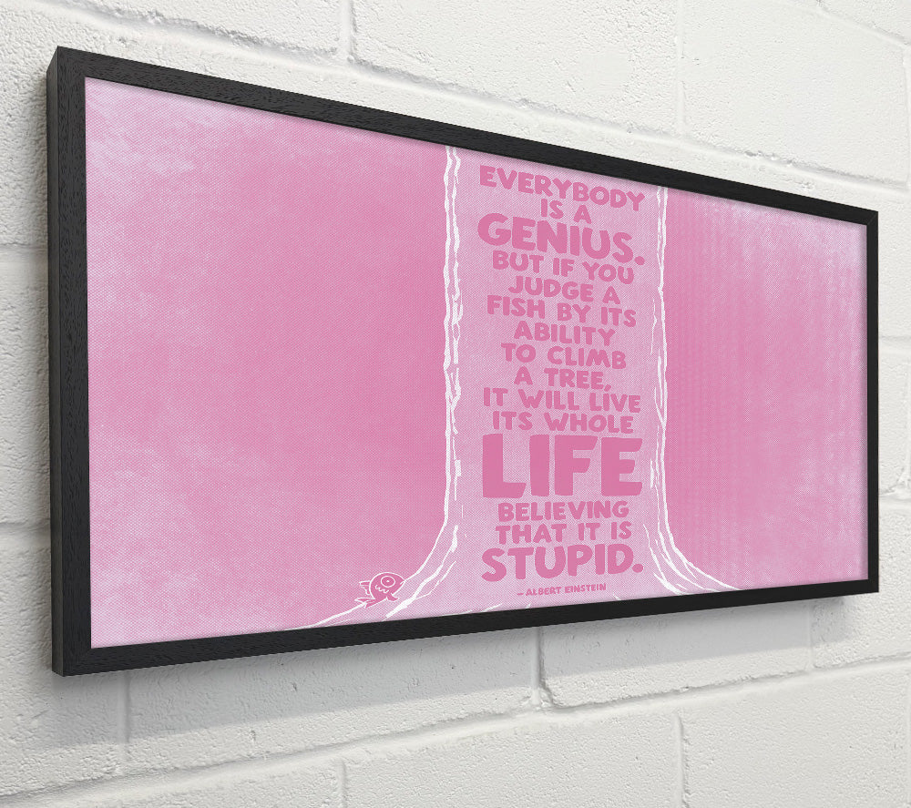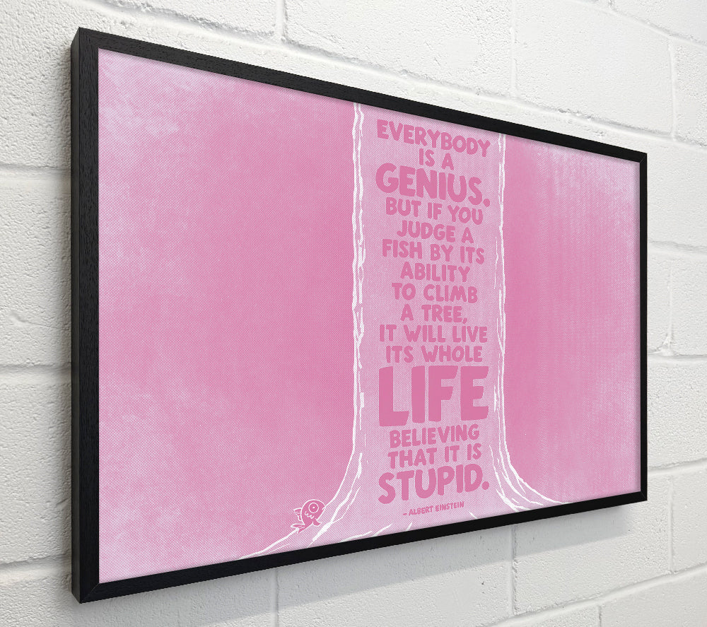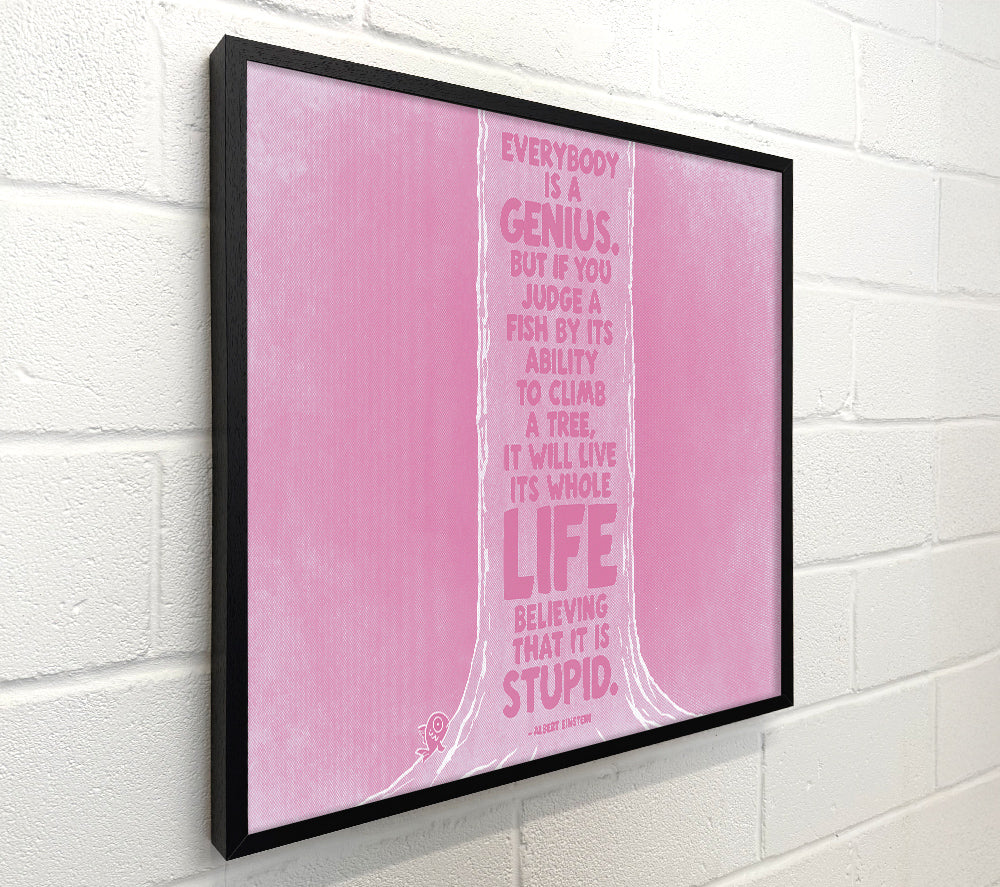 Motivational Quote Albert Einstein Everybody Is A Genius Pink