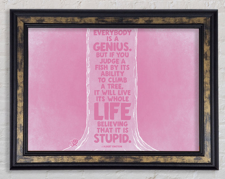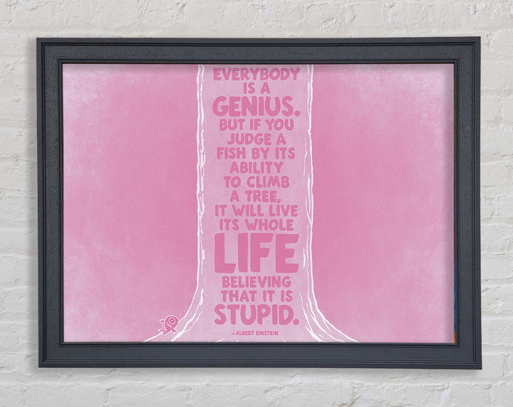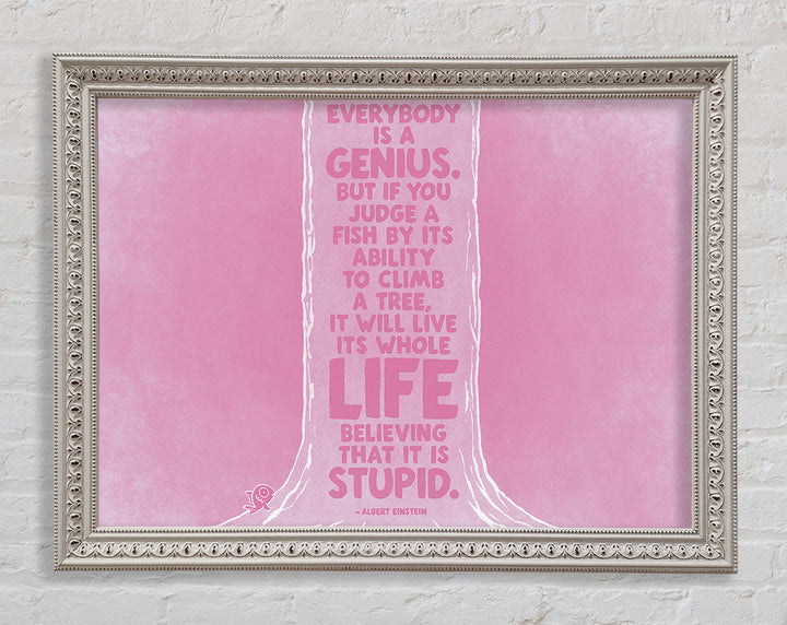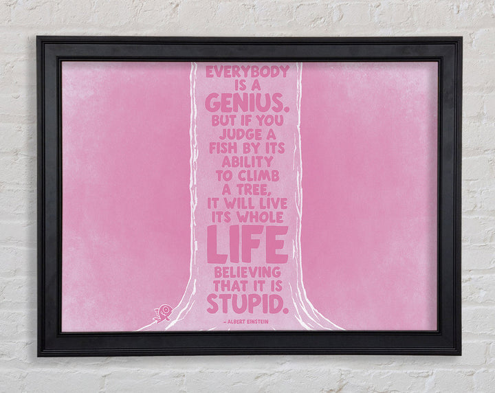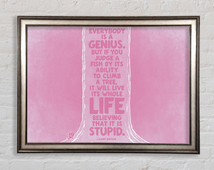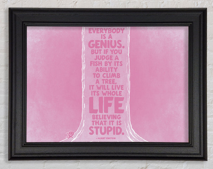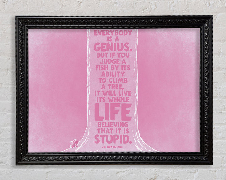 Motivational Quote Albert Einstein Everybody Is A Genius Pink Framed Print