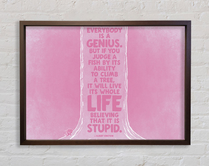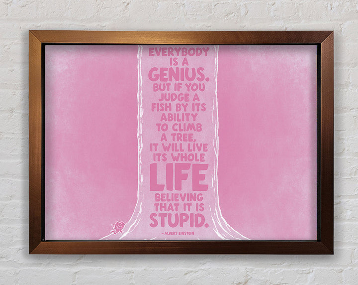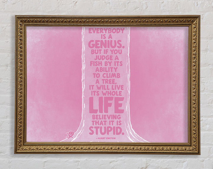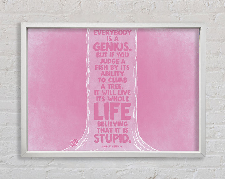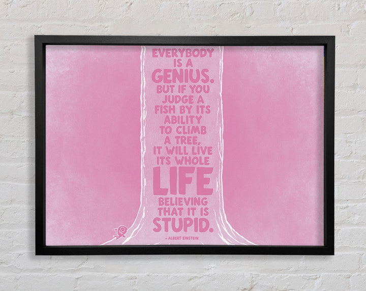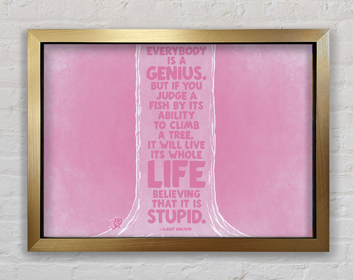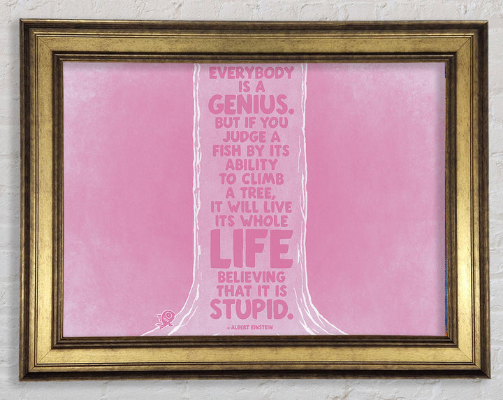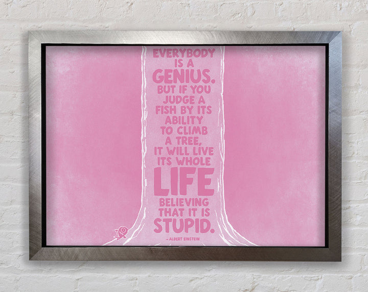 Motivational Quote Albert Einstein Everybody Is A Genius Pink Framed Print