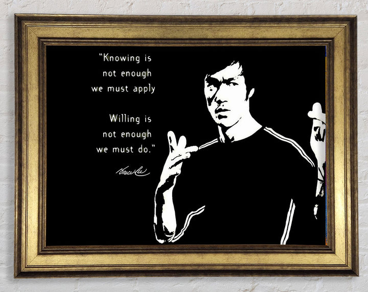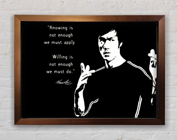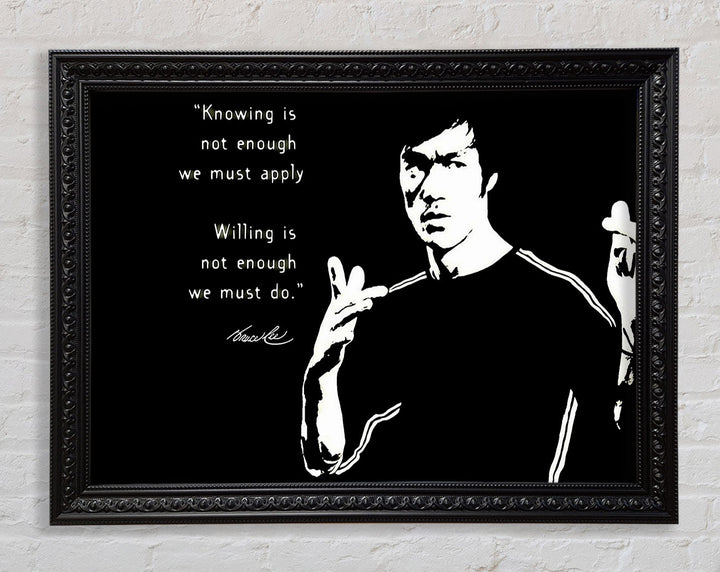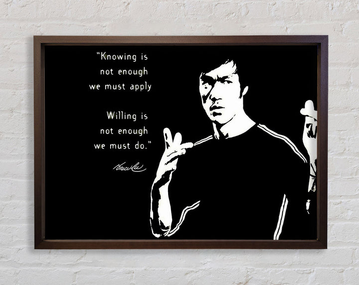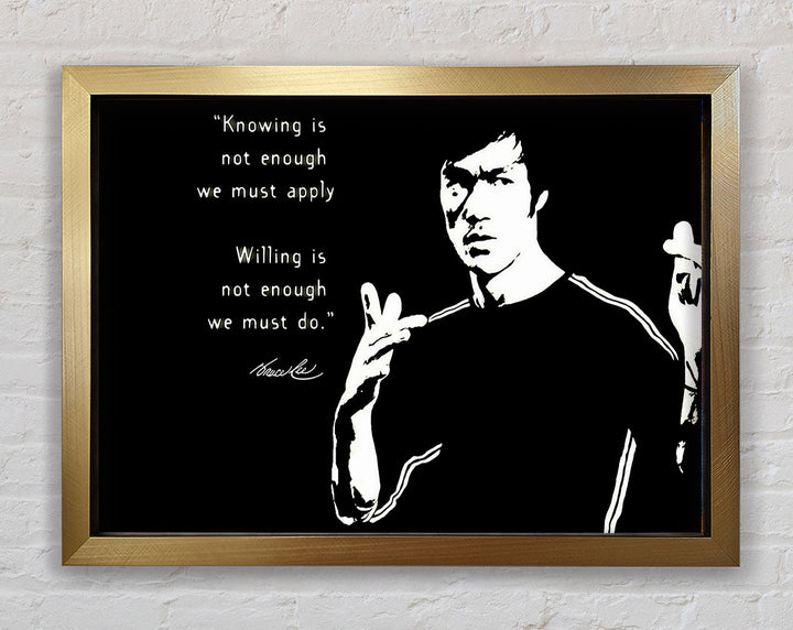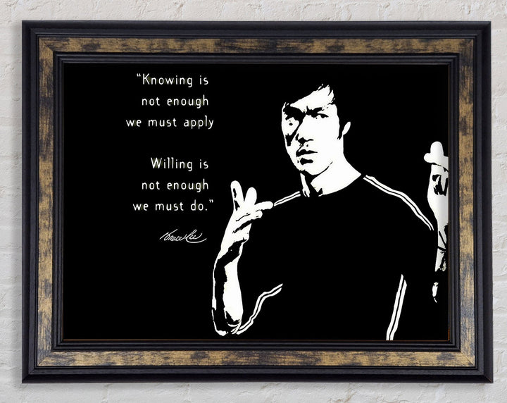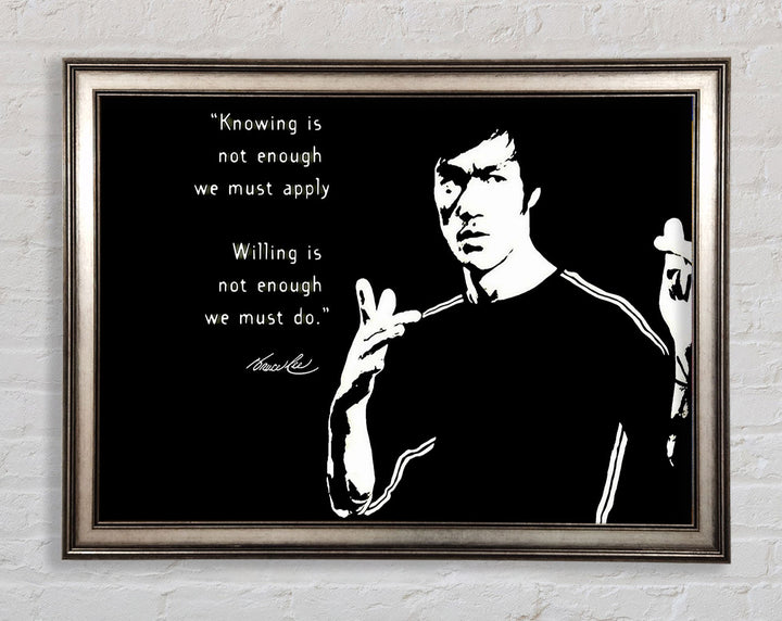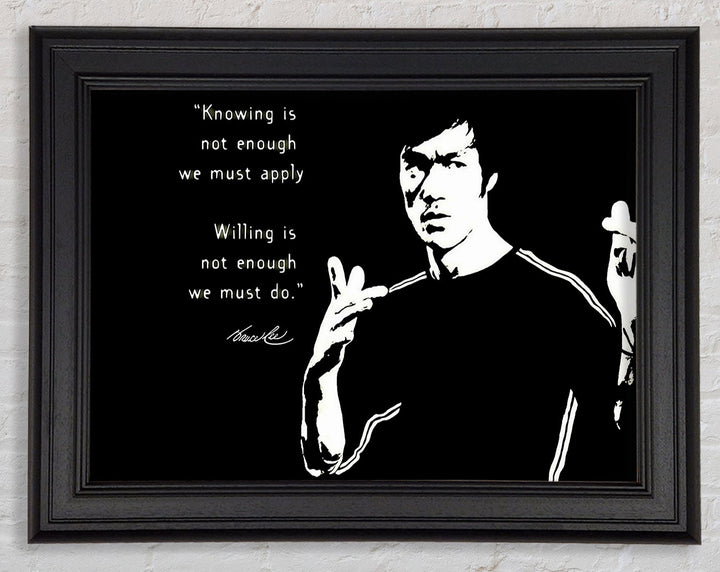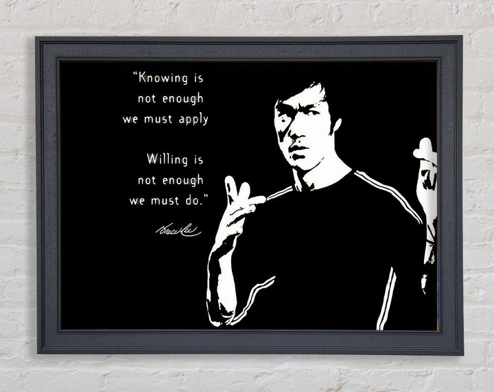 Motivational Quote Bruce Lee Knowing Is Not Enough Framed Print