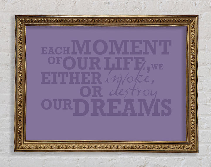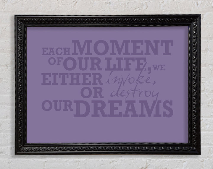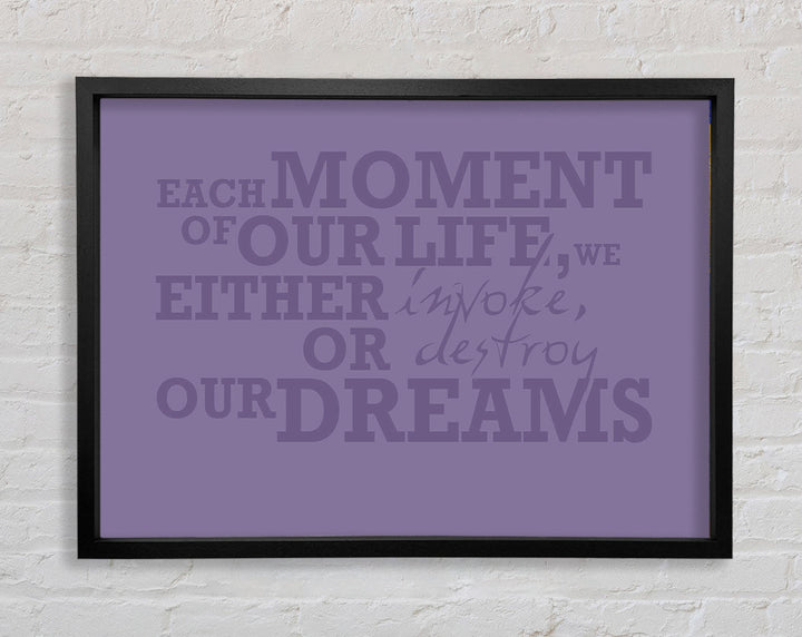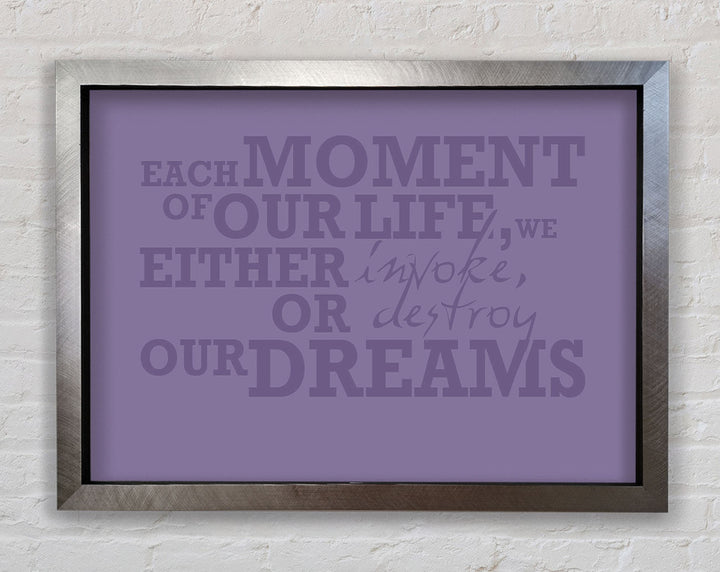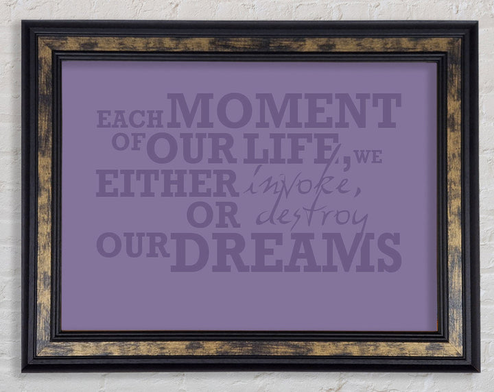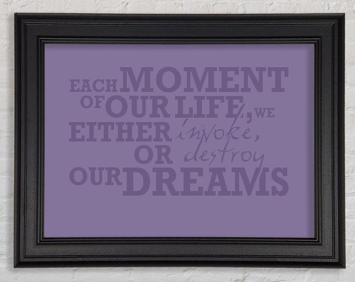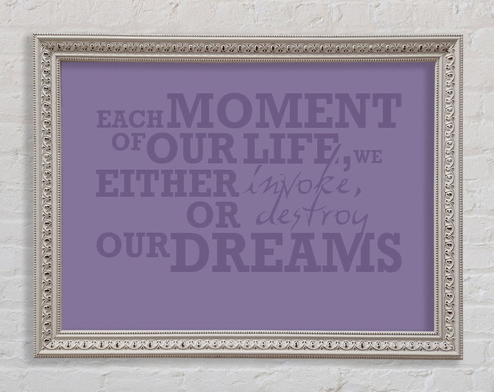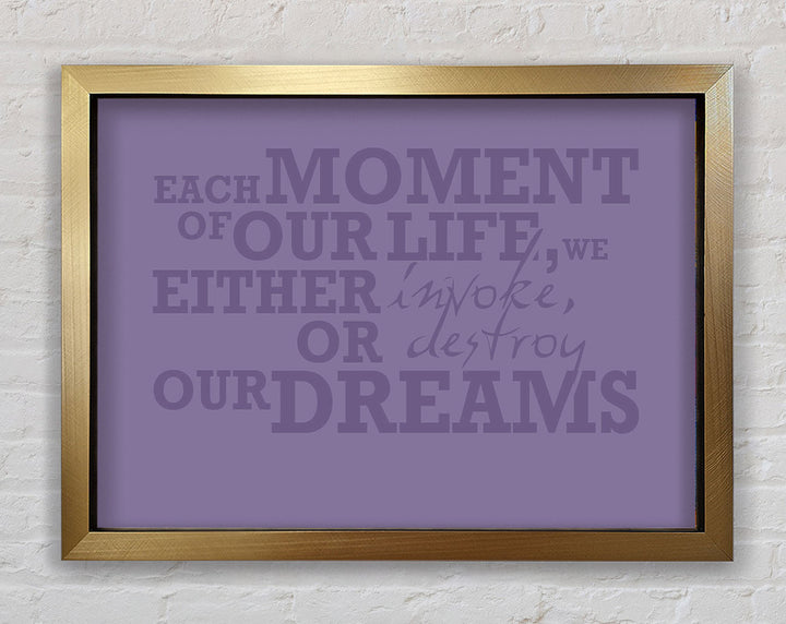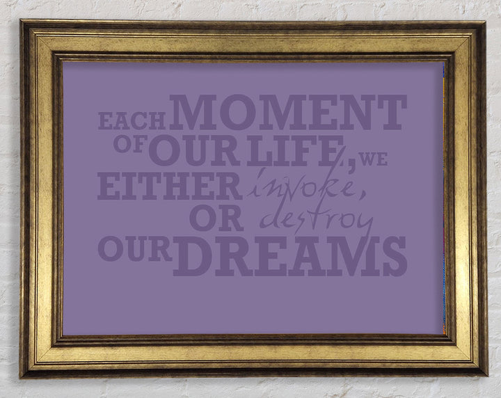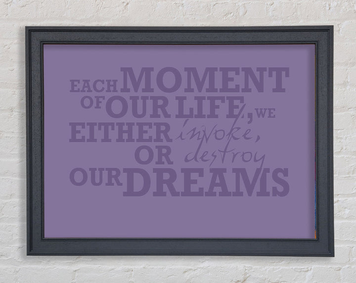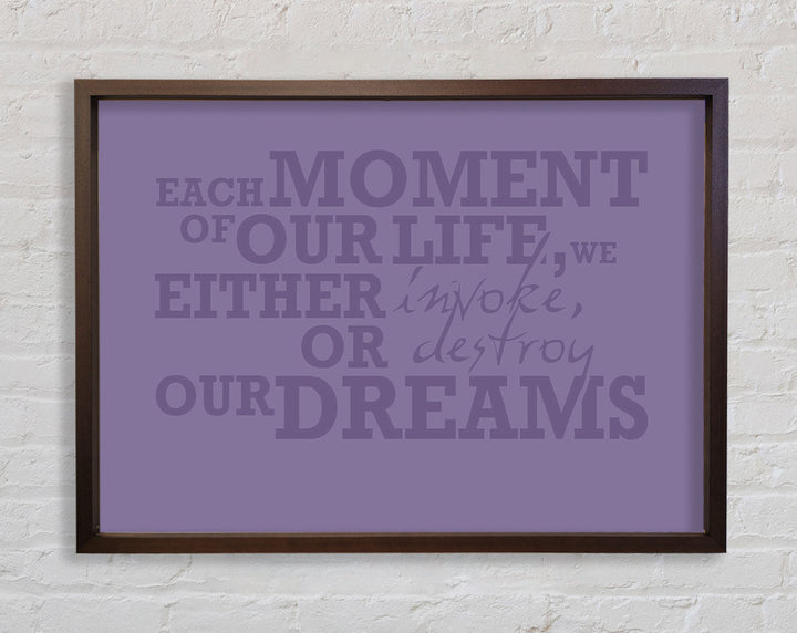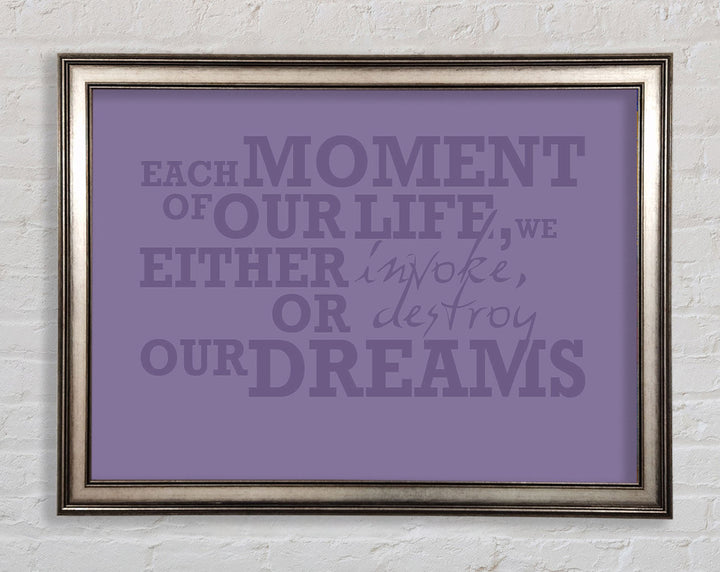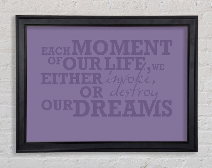 Motivational Quote Each Moment Of Our Life Lilac Framed Print
