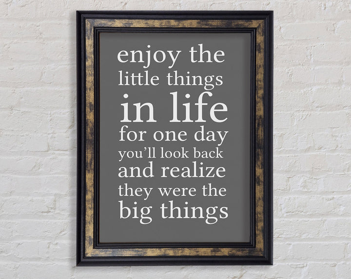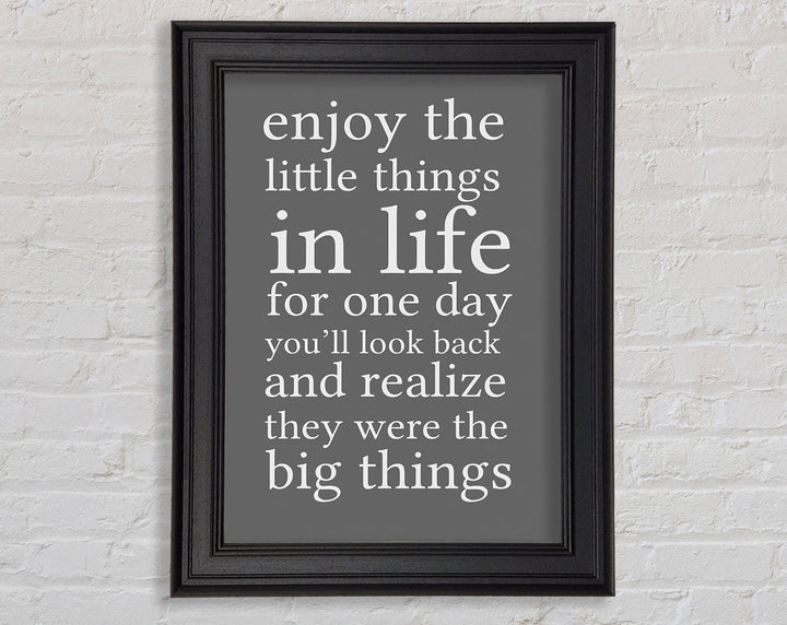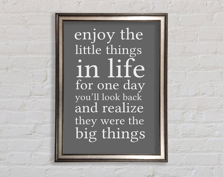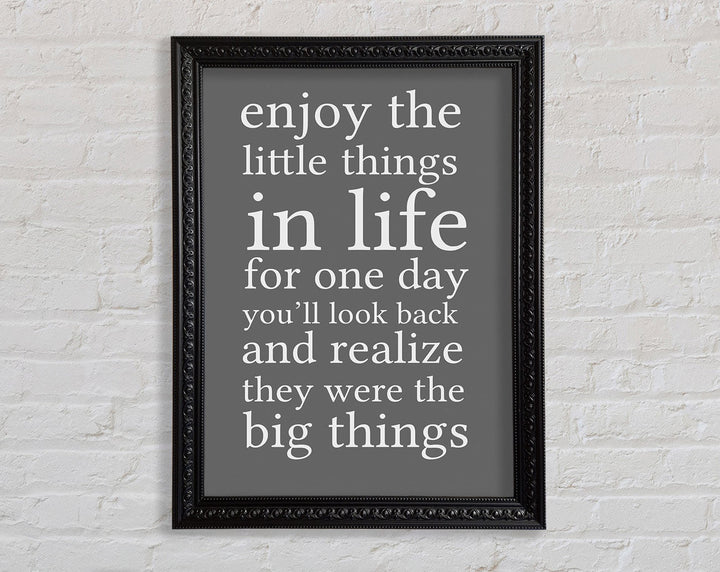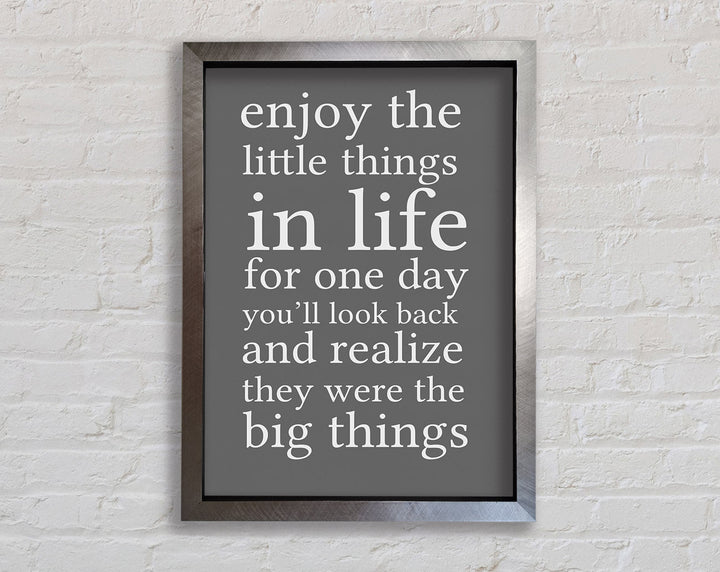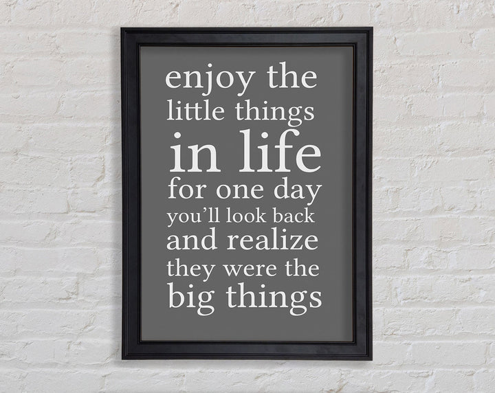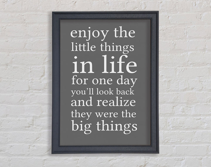 Motivational Quote Enjoy The Little Things In Life Grey Framed Print