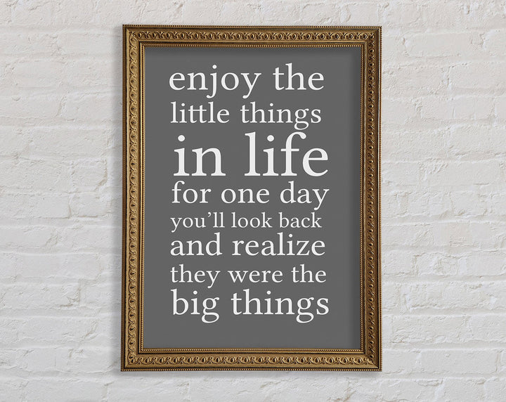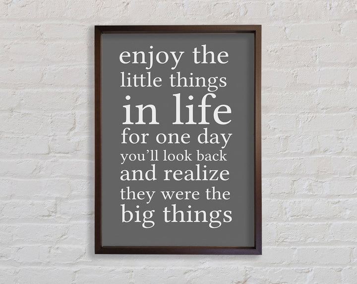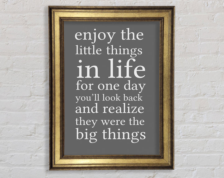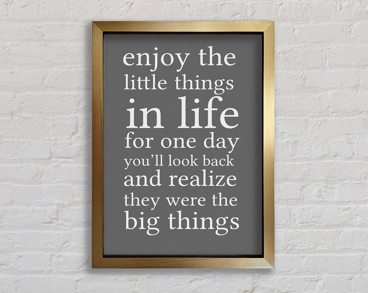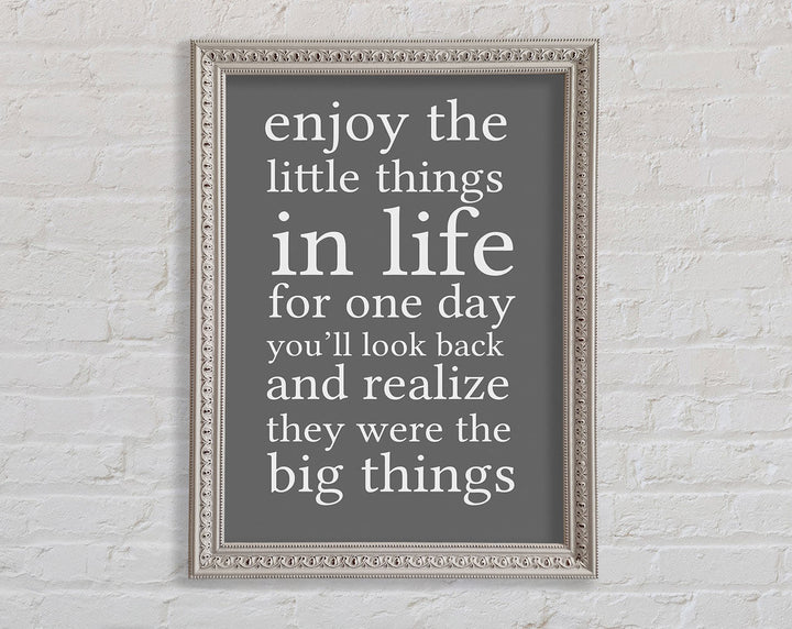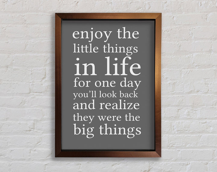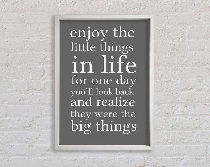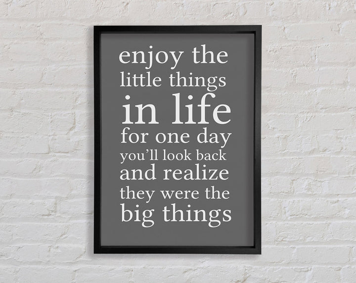Motivational Quote Enjoy The Little Things In Life Grey Framed Print