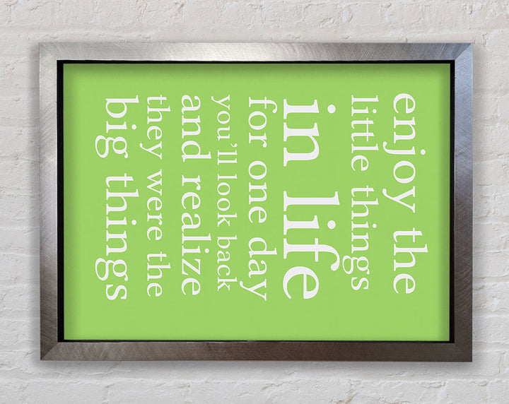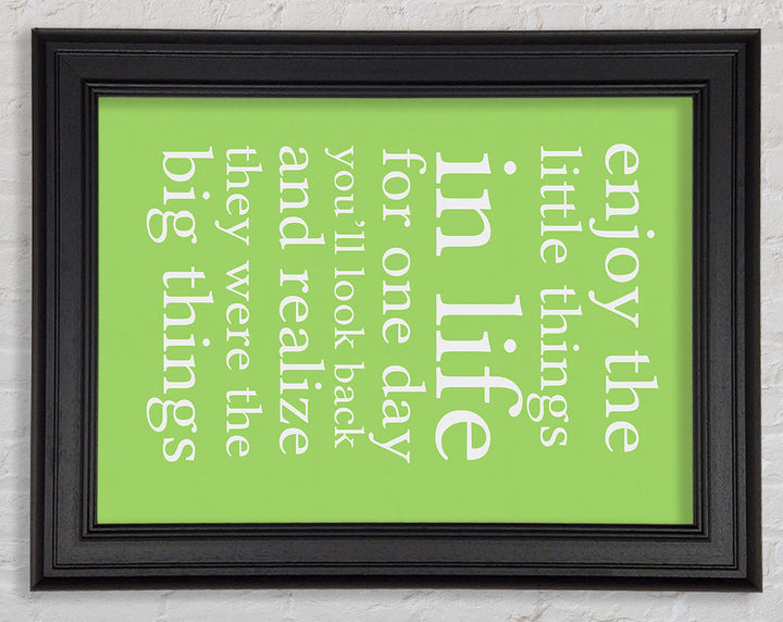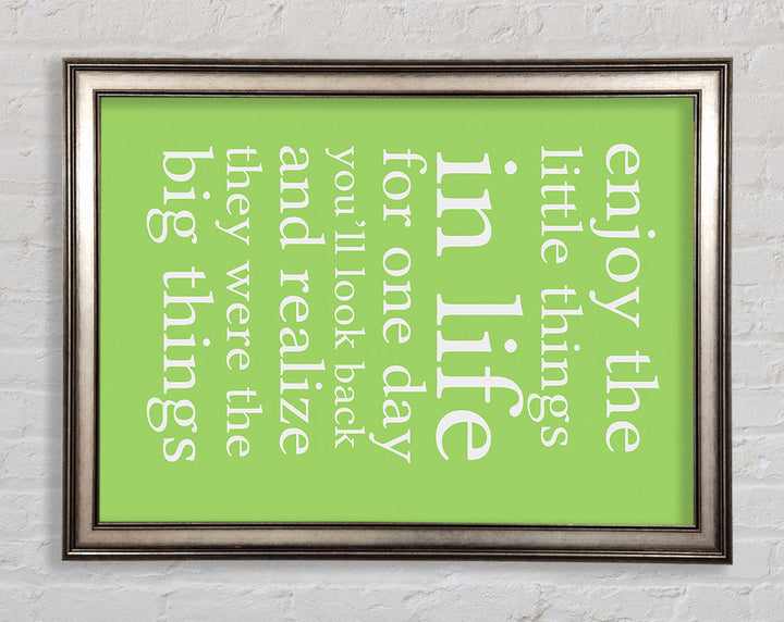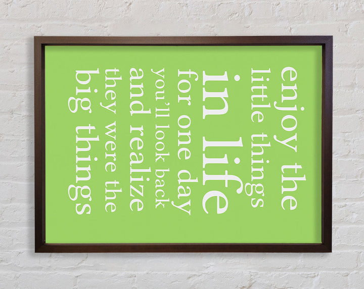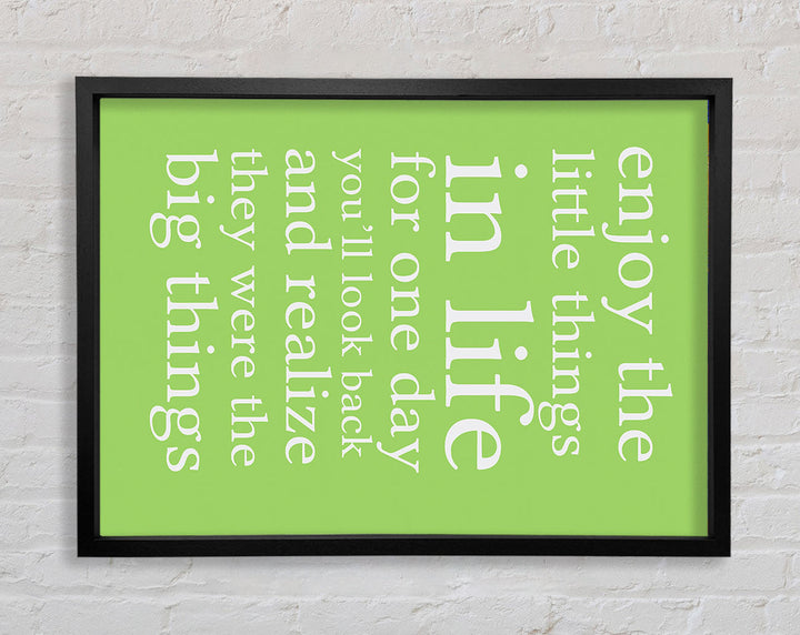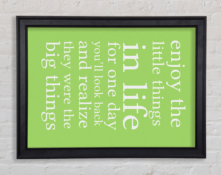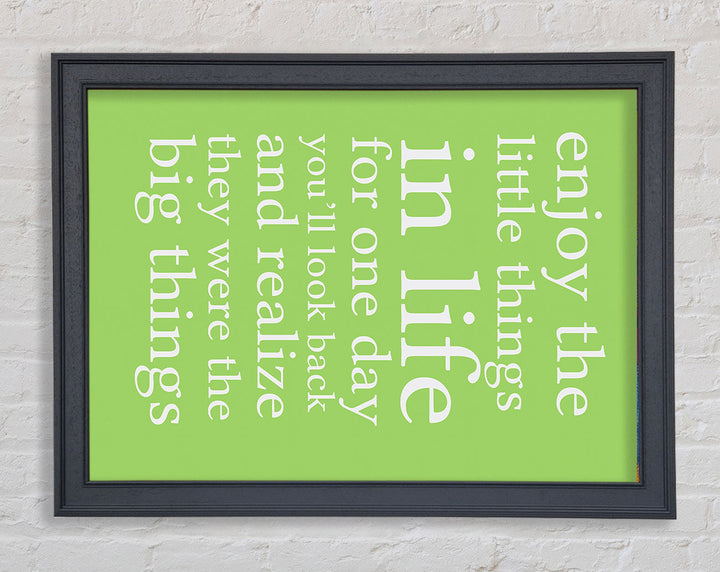 Motivational Quote Enjoy The Little Things In Life Lime Green Framed Print