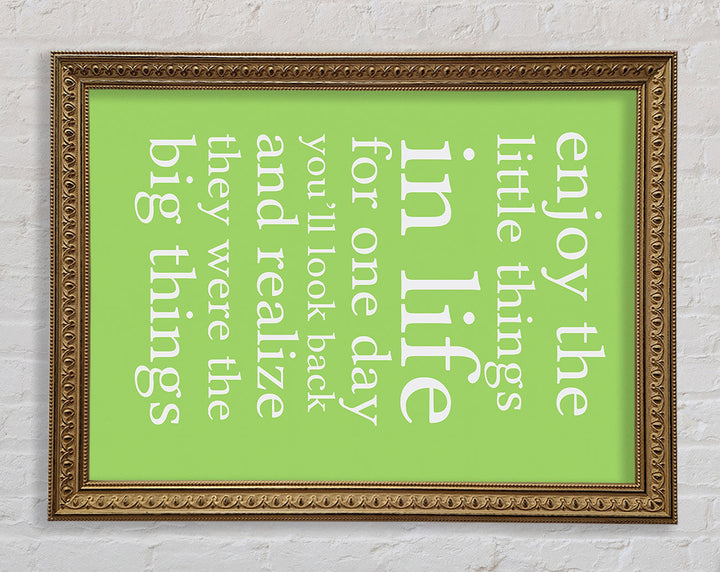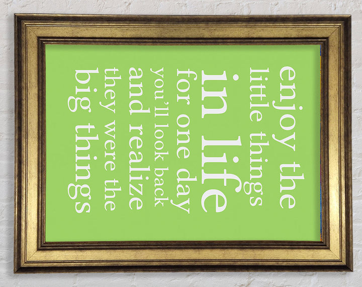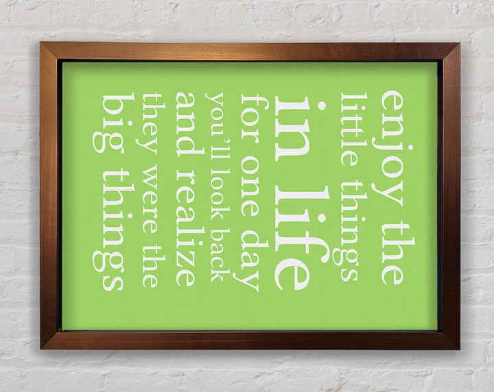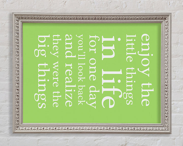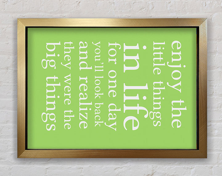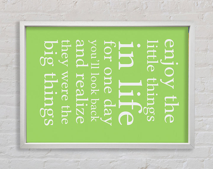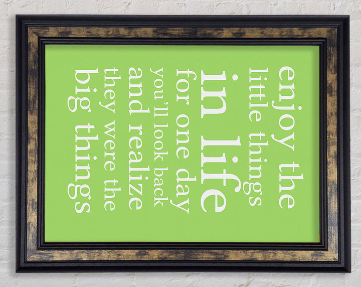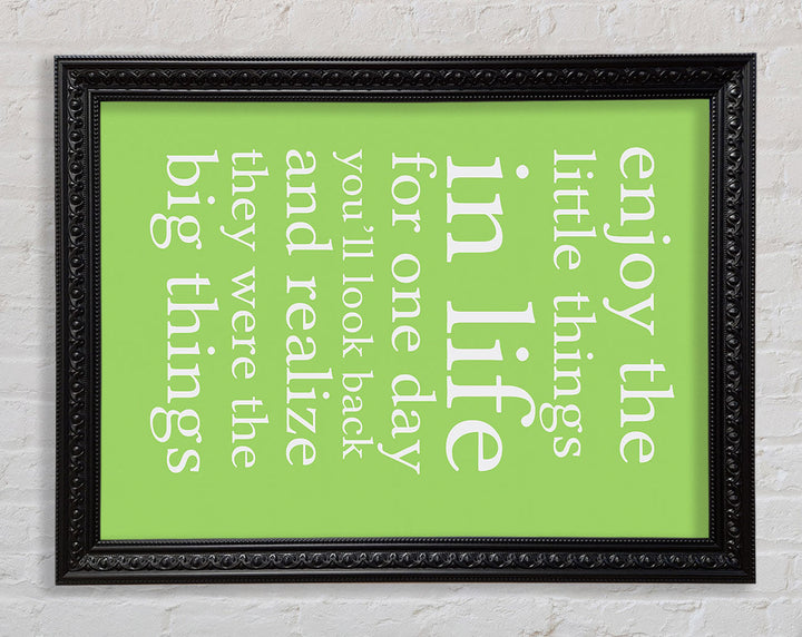 Motivational Quote Enjoy The Little Things In Life Lime Green Framed Print