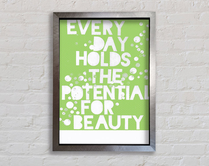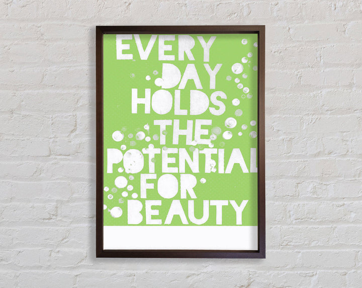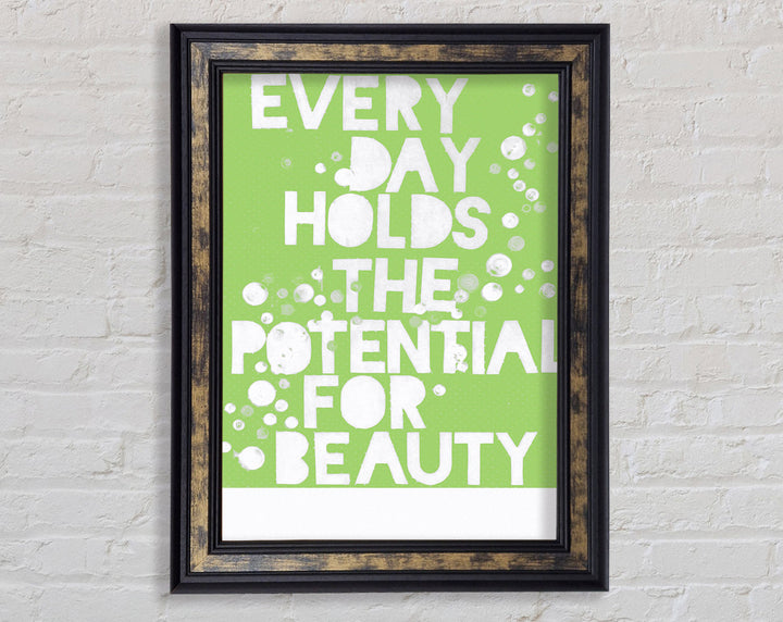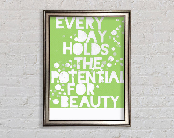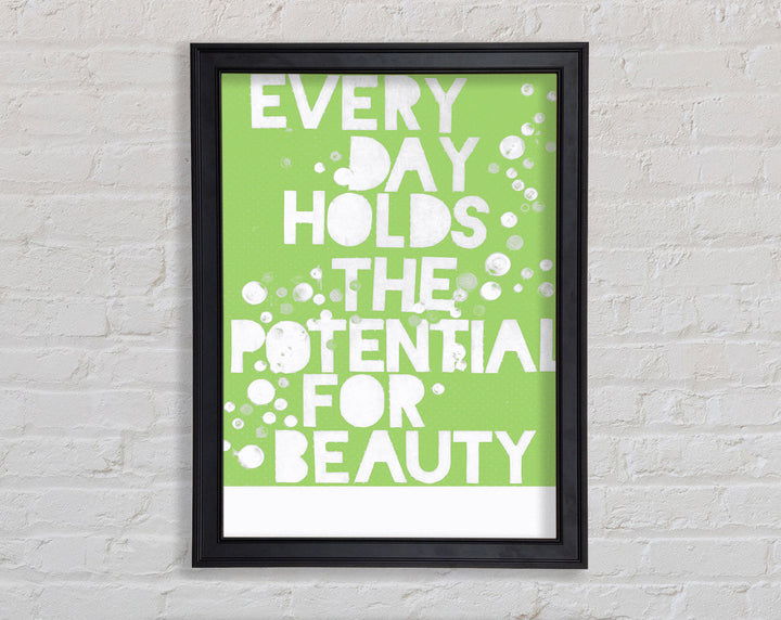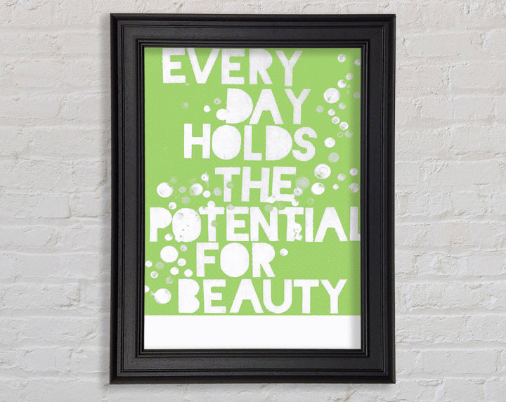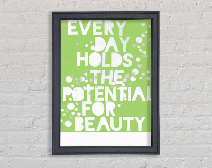 Motivational Quote Every Day Holds The Potential Lime Green Framed Print