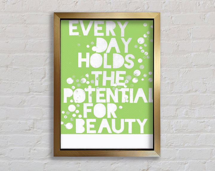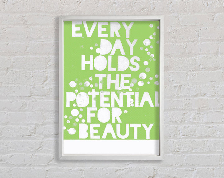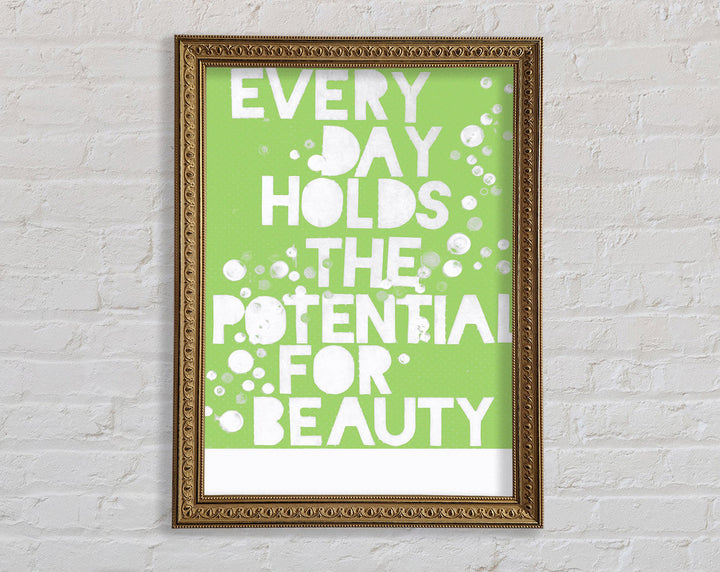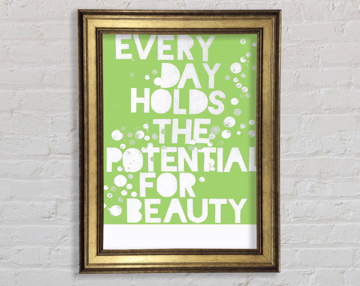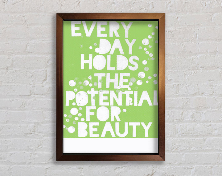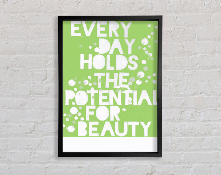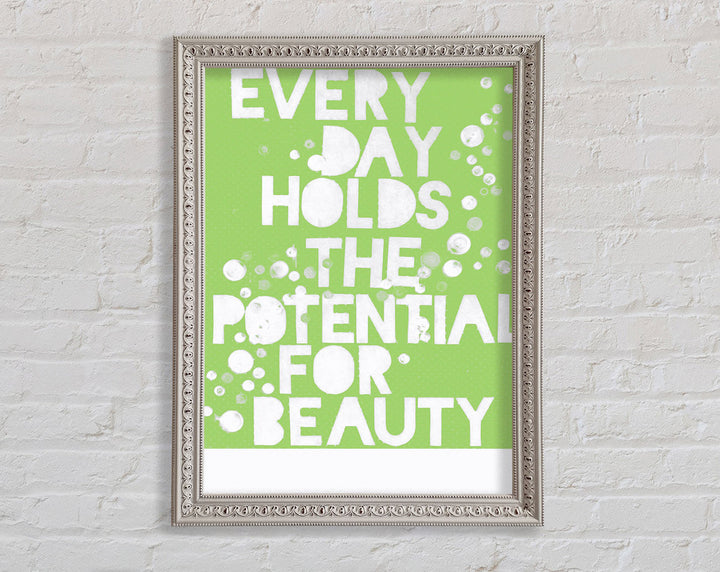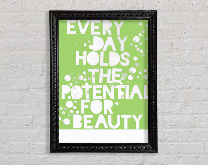 Motivational Quote Every Day Holds The Potential Lime Green Framed Print