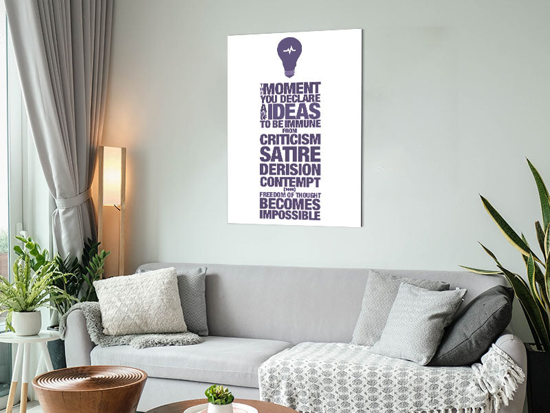 Motivational Quote Freedom Of Thought Lilac Printed on brushed aluminium dibond. A modern way to display art and easy to maintain.