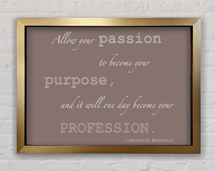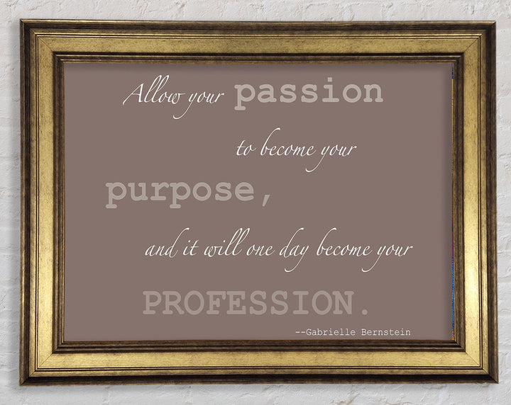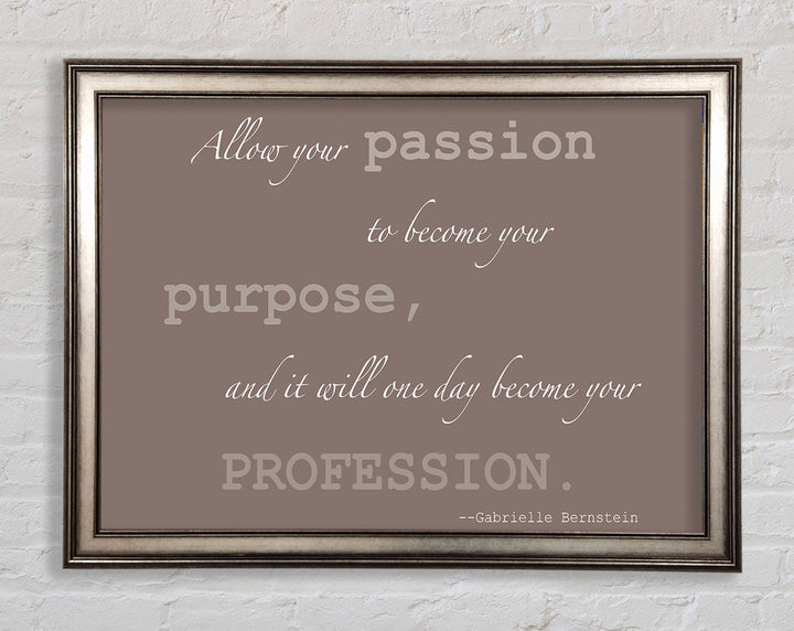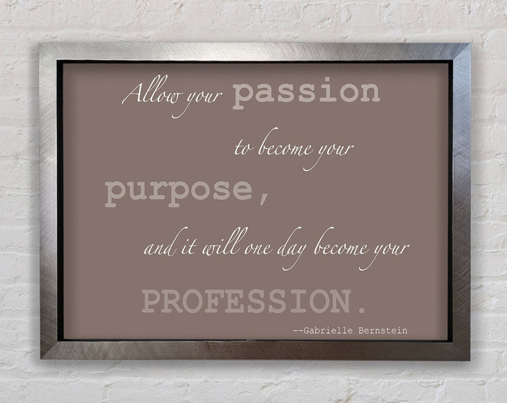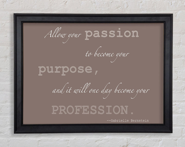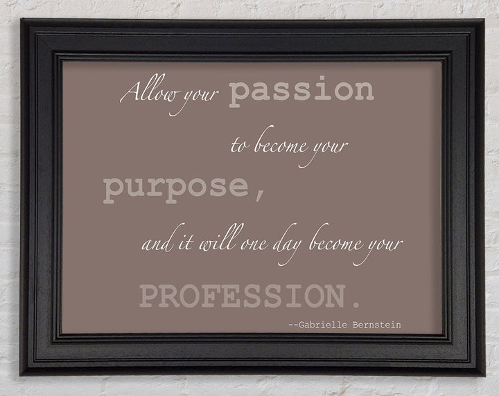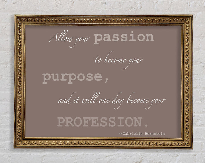 Motivational Quote Gabrielle Bernstein Allow Your Passion Beige Framed Print