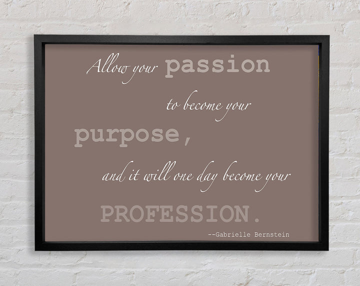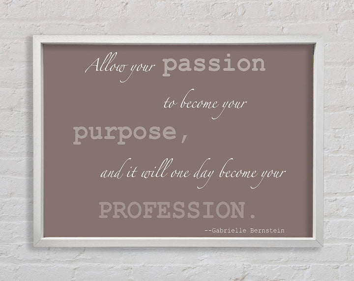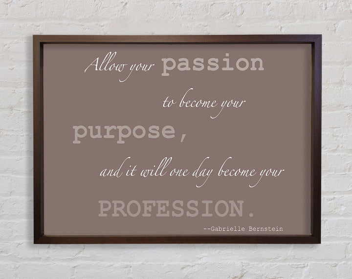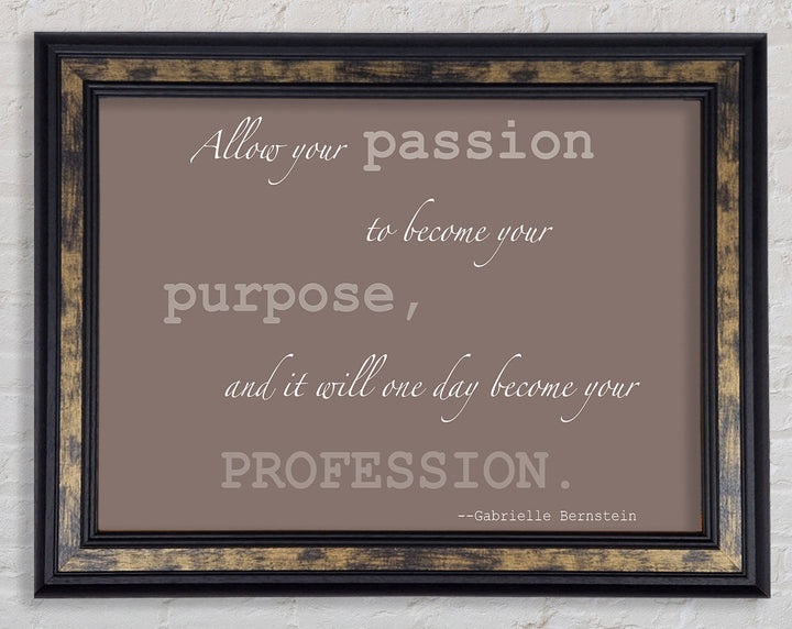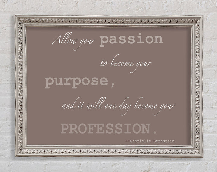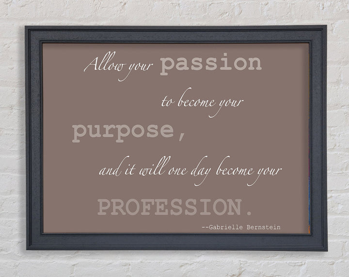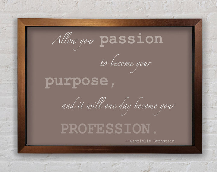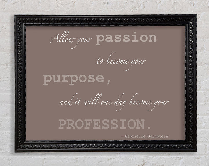 Motivational Quote Gabrielle Bernstein Allow Your Passion Beige Framed Print