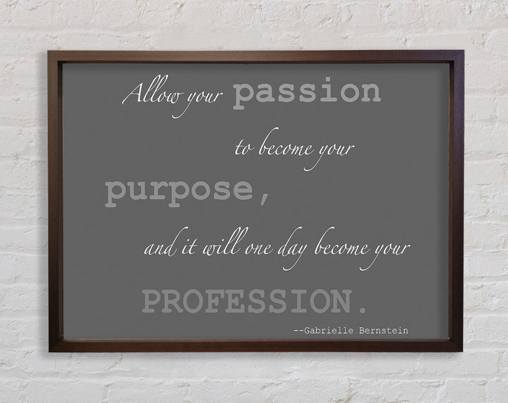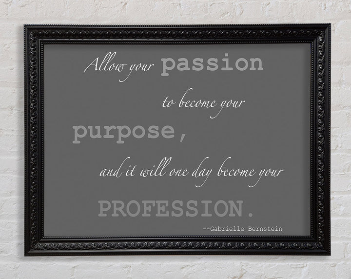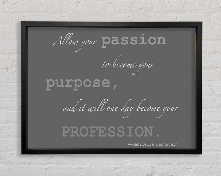 Introducing the Motivational Quote Gabrielle Bernstein Allow Your Passion Grey Framed Print, a perfect addition to any space needing inspiration. This framed art piece, featuring a powerful quote by Gabrielle Bernstein, is designed to uplift and motivate. Available in six different sizes, from small to oversized, it fits seamlessly into any room, whether it's a cozy corner or a spacious office.