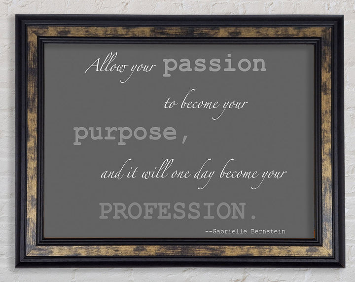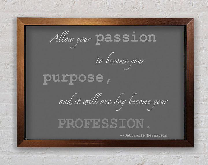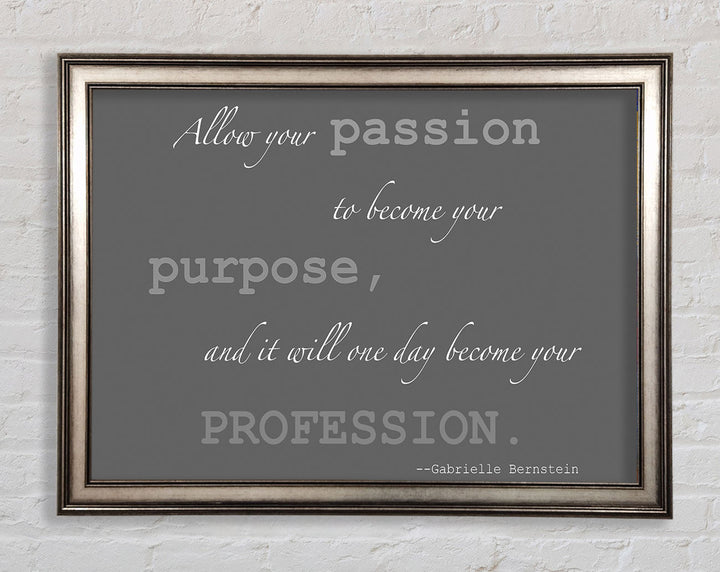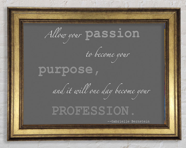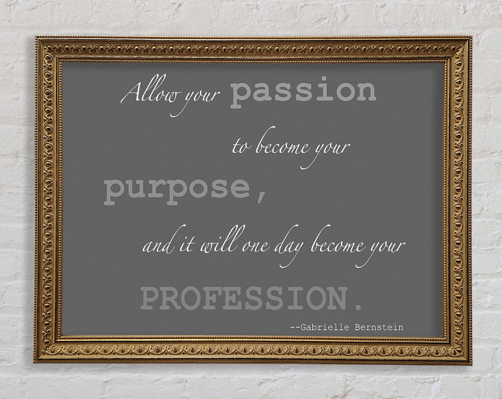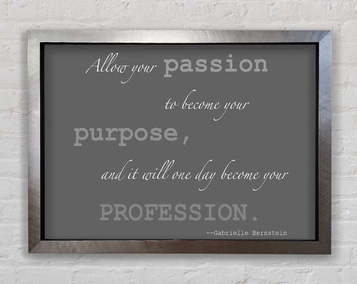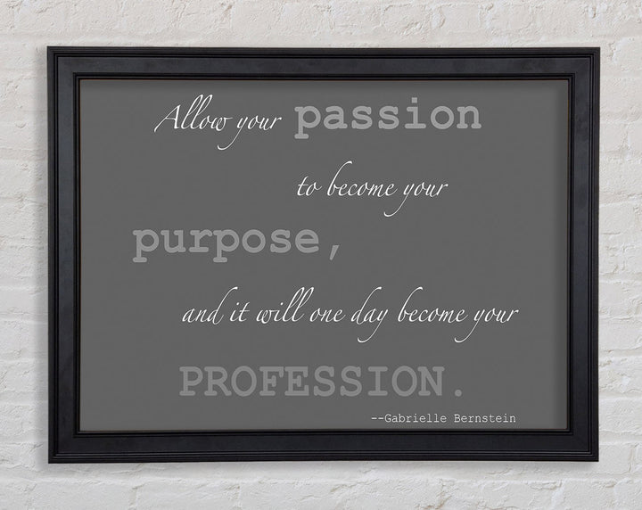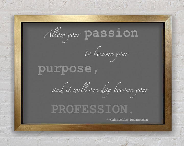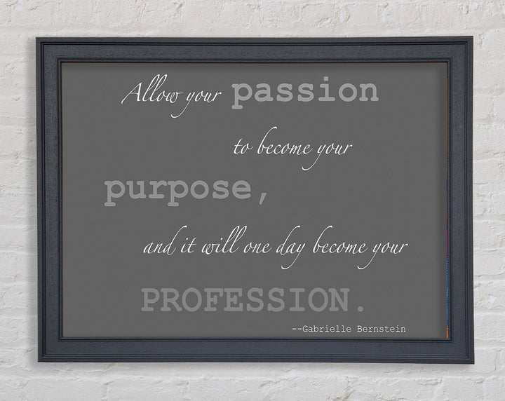 Motivational Quote Gabrielle Bernstein Allow Your Passion Grey Framed Print