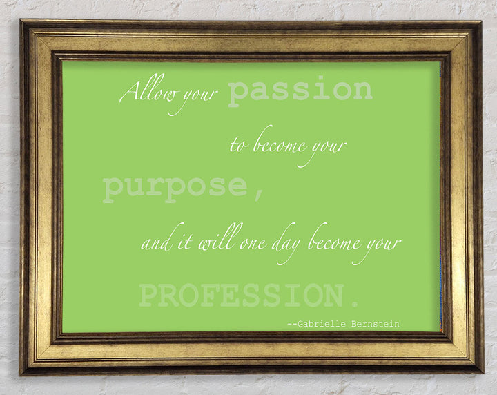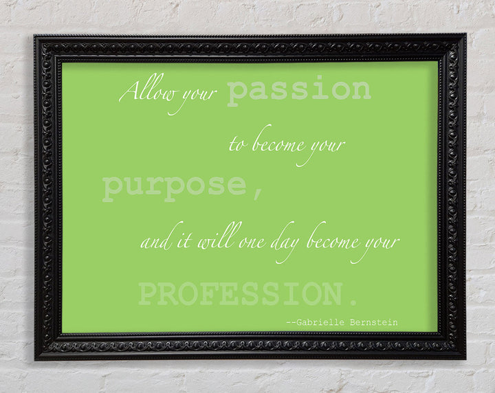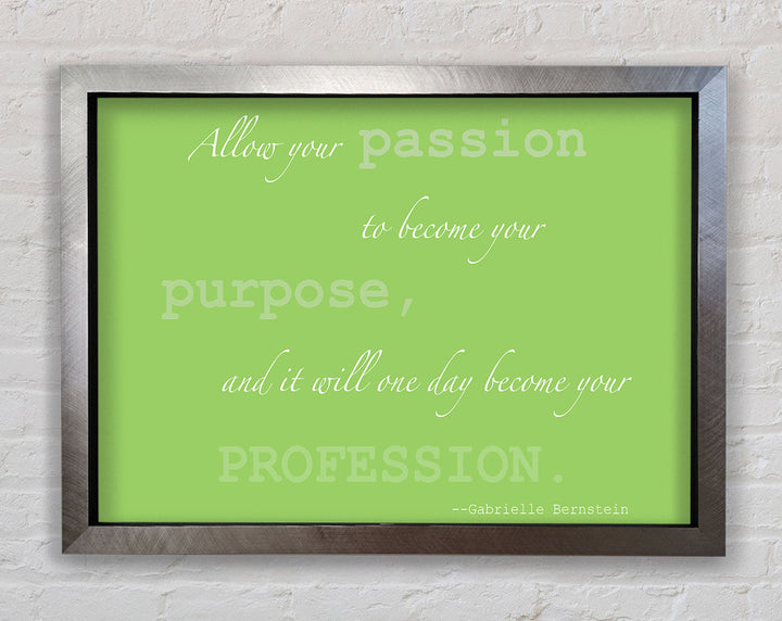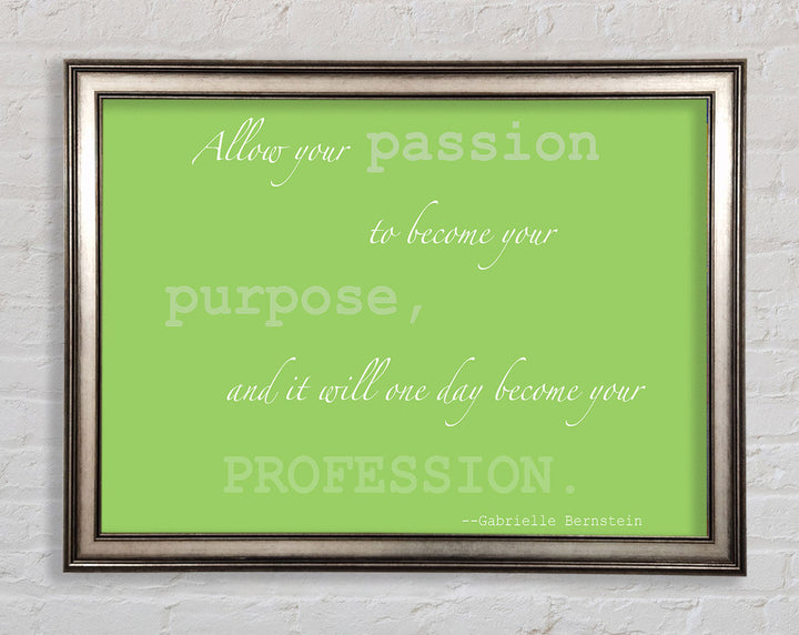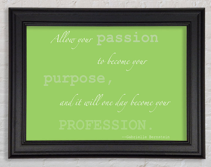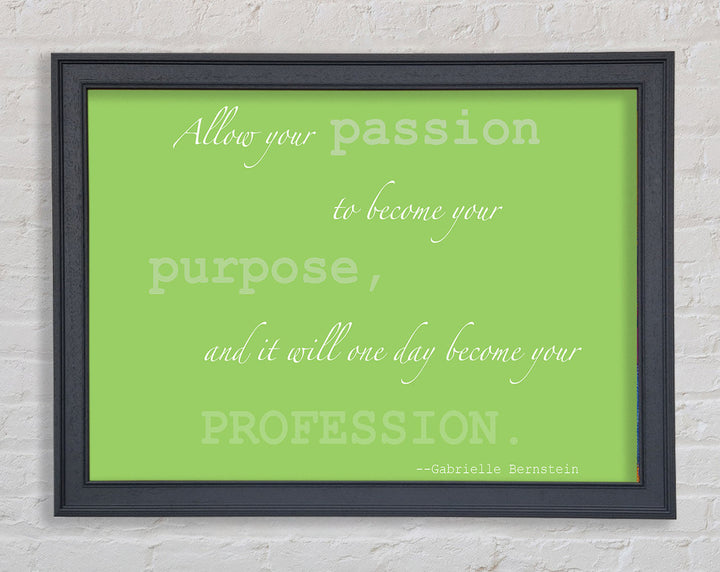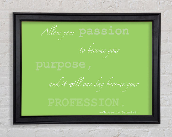 Motivational Quote Gabrielle Bernstein Allow Your Passion Lime Green Framed Print