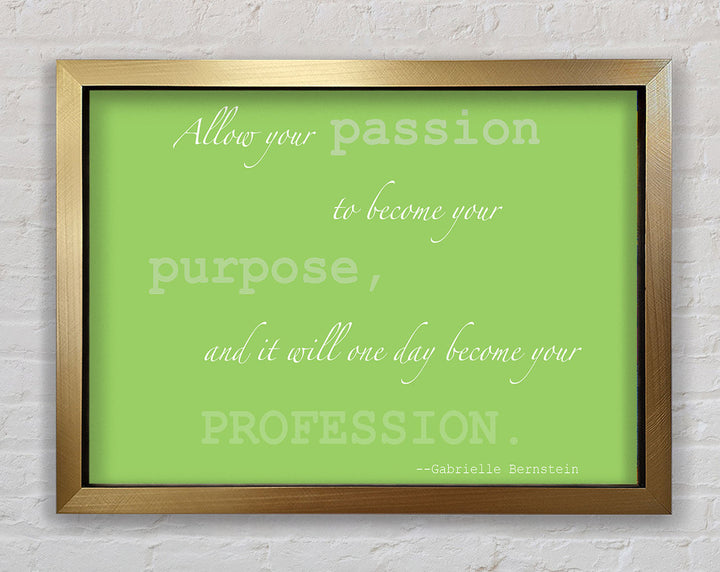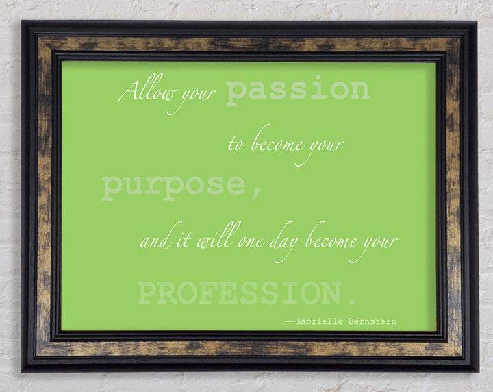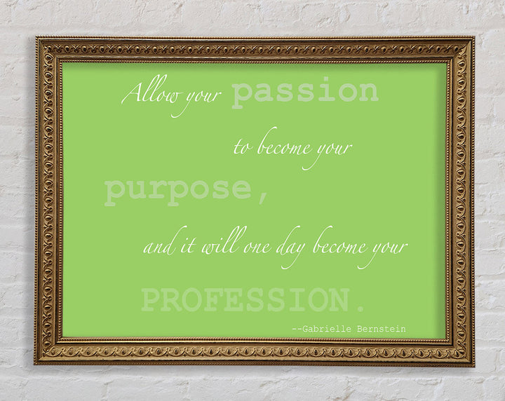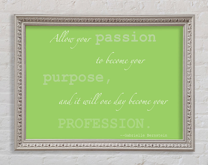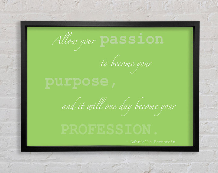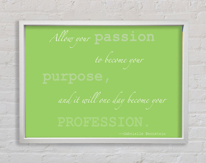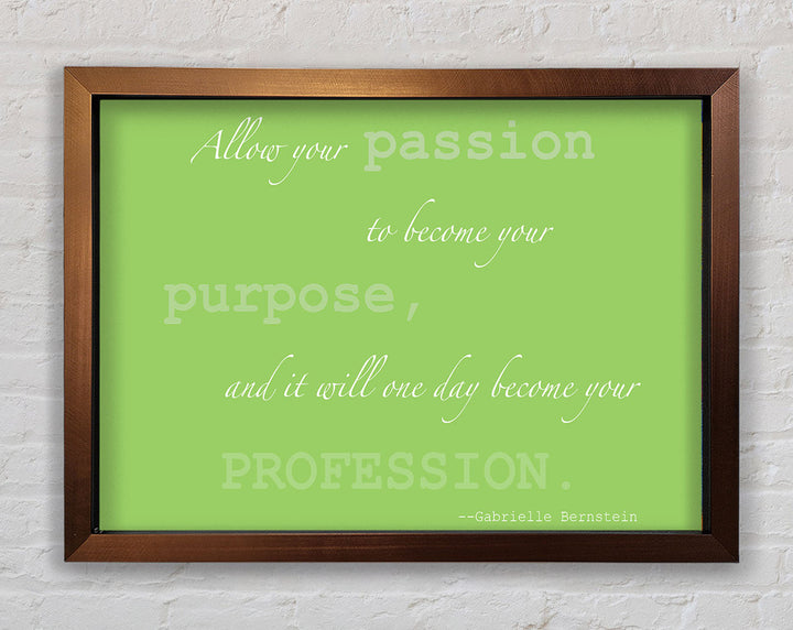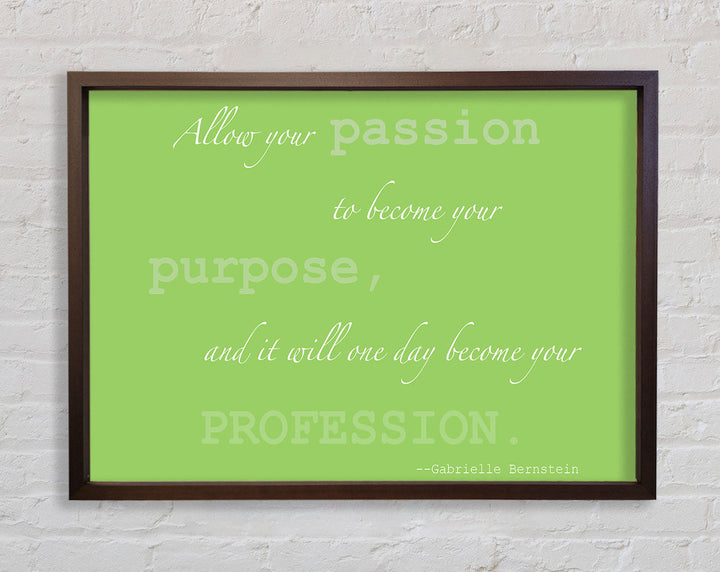 Motivational Quote Gabrielle Bernstein Allow Your Passion Lime Green Framed Print