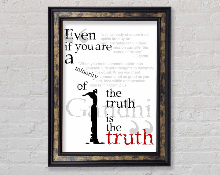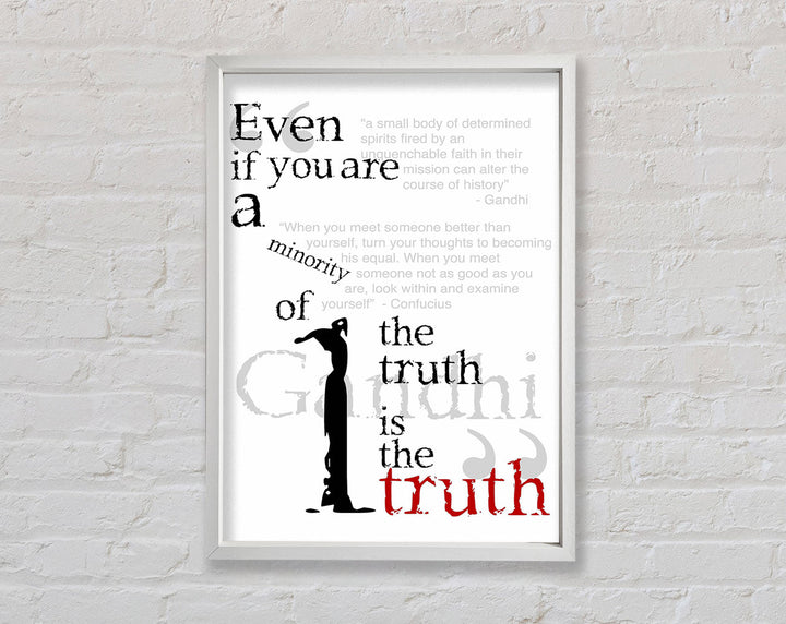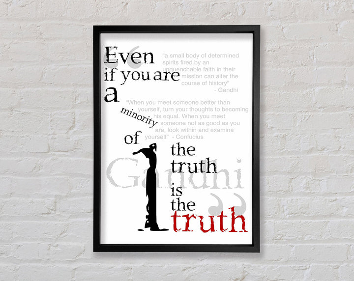 Introducing the Motivational Quote Gandhi "The Truth Is The Truth" Framed Print, a perfect piece of framed art to inspire and uplift your living space. This beautiful print features a timeless quote from Mahatma Gandhi, reminding us of the power of truth. Available in six sizes, from small to oversized, this versatile artwork can fit any room, whether it's your home office, living room, or bedroom. Choose from a variety of colors to match your decor. Each piece is handmade in the United Kingdom, ensuring high-quality craftsmanship. Ready to hang, this framed print makes it easy to add a touch of motivation and elegance to your walls.