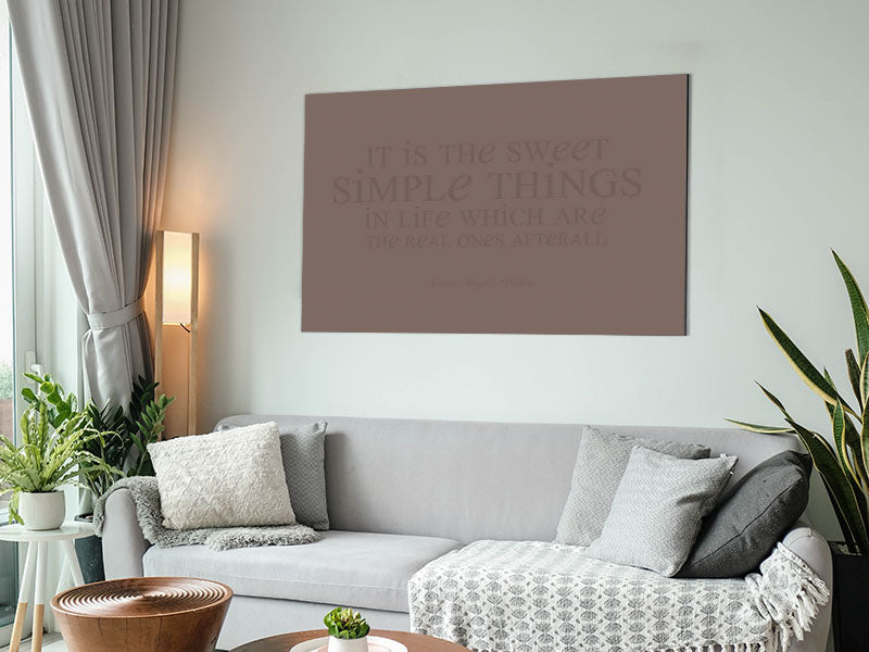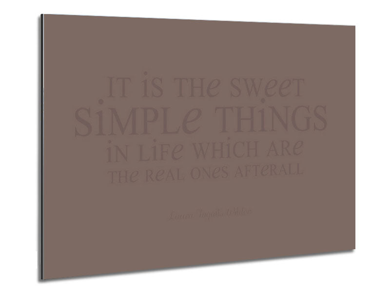 Motivational Quote Laura Wilder It Is The Sweet Simple Things Beige Printed on brushed aluminium dibond. A modern way to display art and easy to maintain.