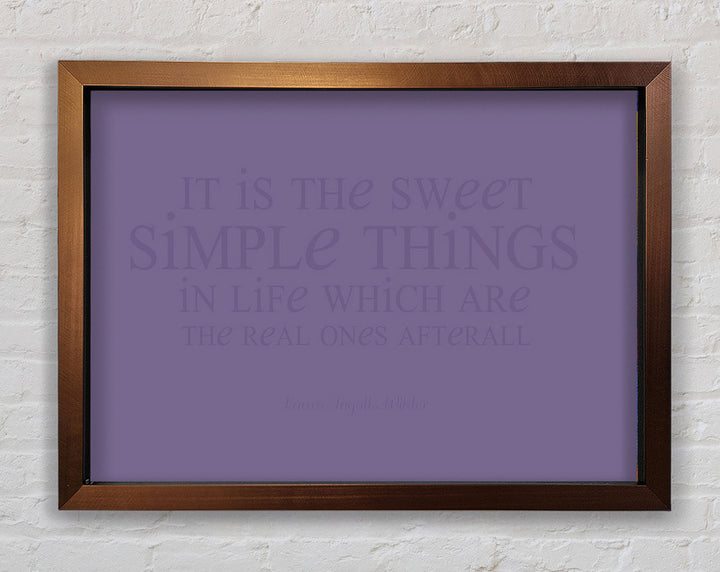Motivational Quote Laura Wilder It Is The Sweet Simple Things Lilac Framed Print