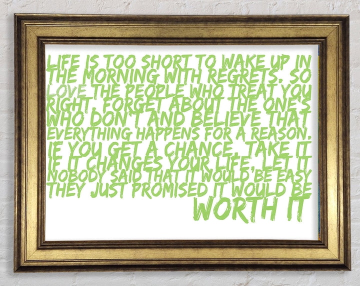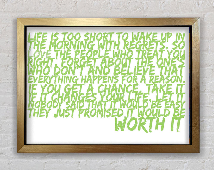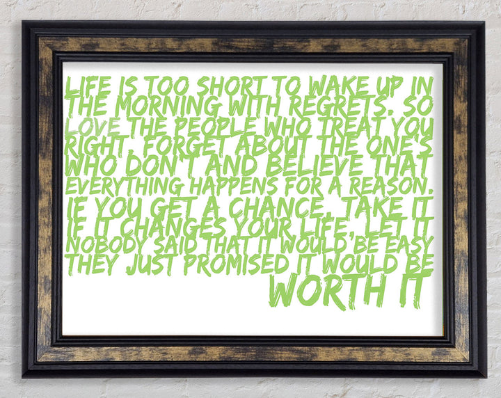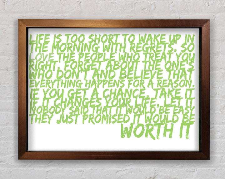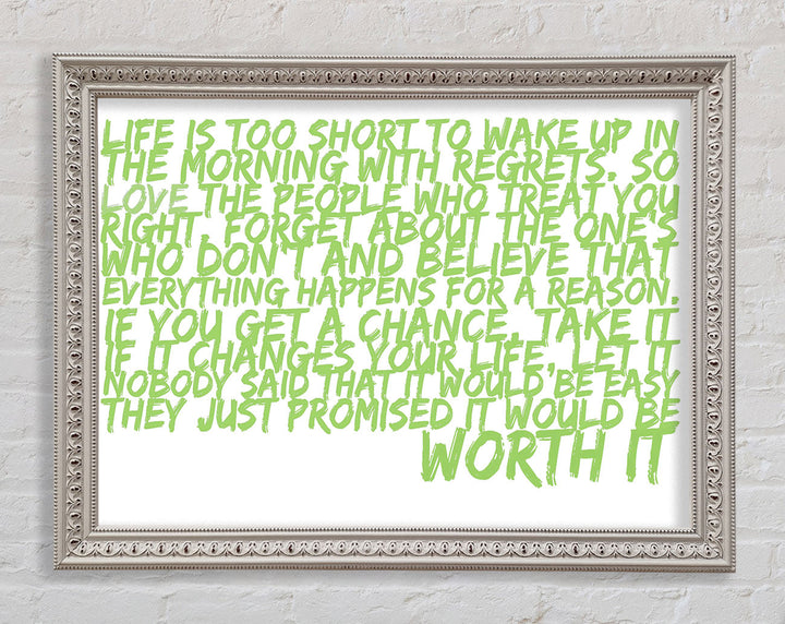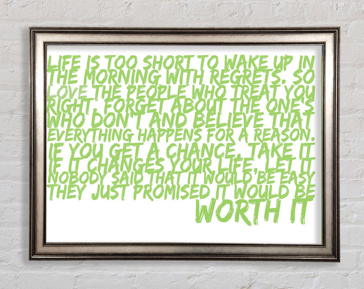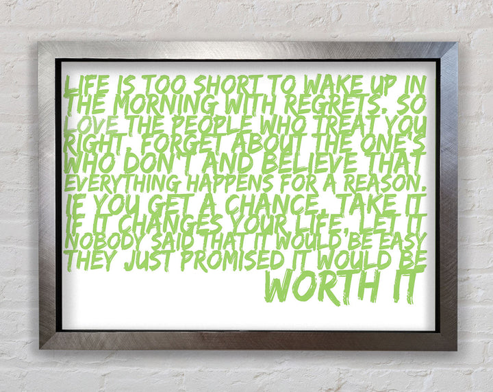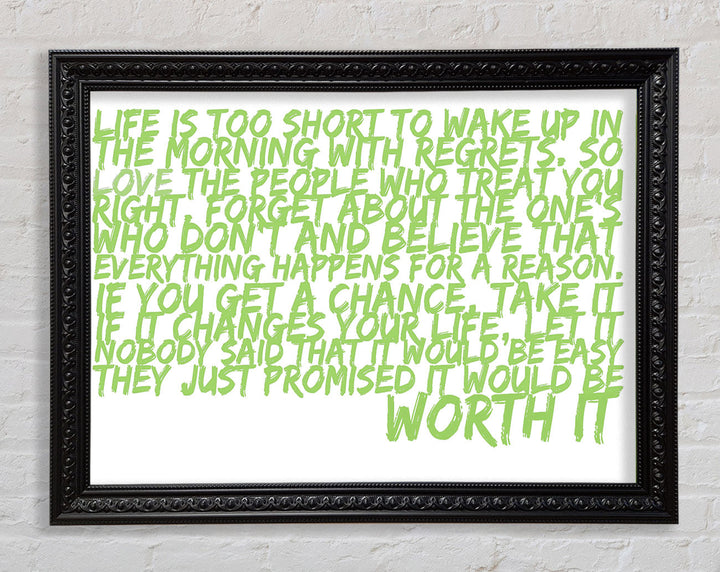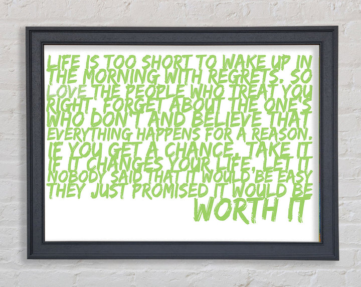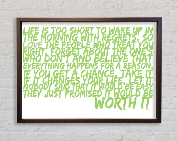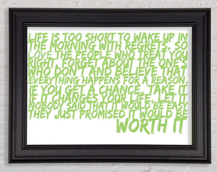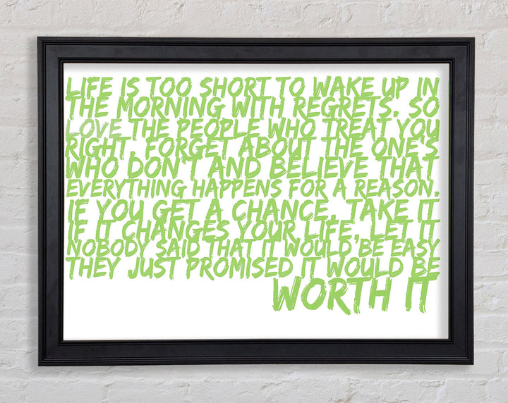 Motivational Quote Life Is Too Short Your Worth It Lime Green Framed Print