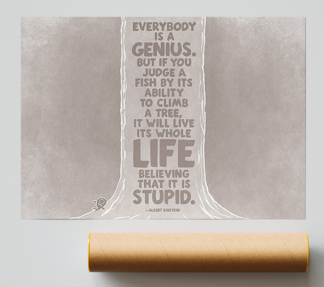 Our Motivational Quote Motivational Quote Albert Einstein Everybody Is A Genius Beige Poster is printed 260 GSM premium lustre paper that offers vibrant colours and exceptional detail.