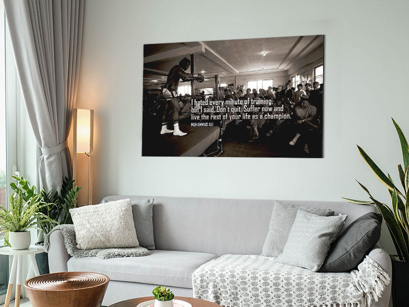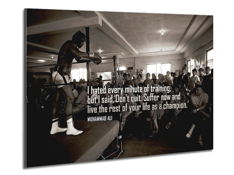 Motivational Quote Muhammad Ali Motivational Printed on brushed aluminium dibond. A modern way to display art and easy to maintain.