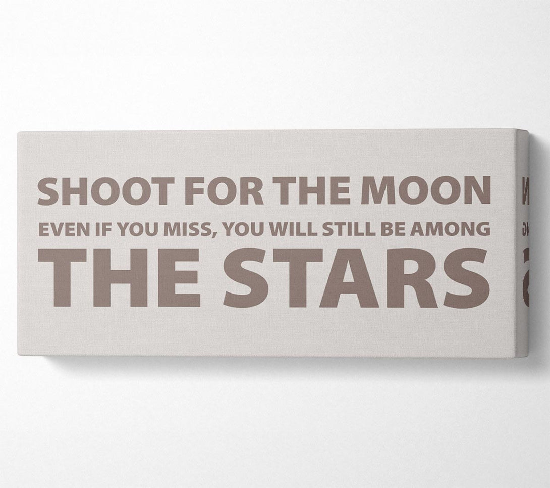 Motivational Quote Shoot For The Moon Beige canvas, printed on coated polyester canvas. Mounted on to a 44mm box frame, ready to hang.