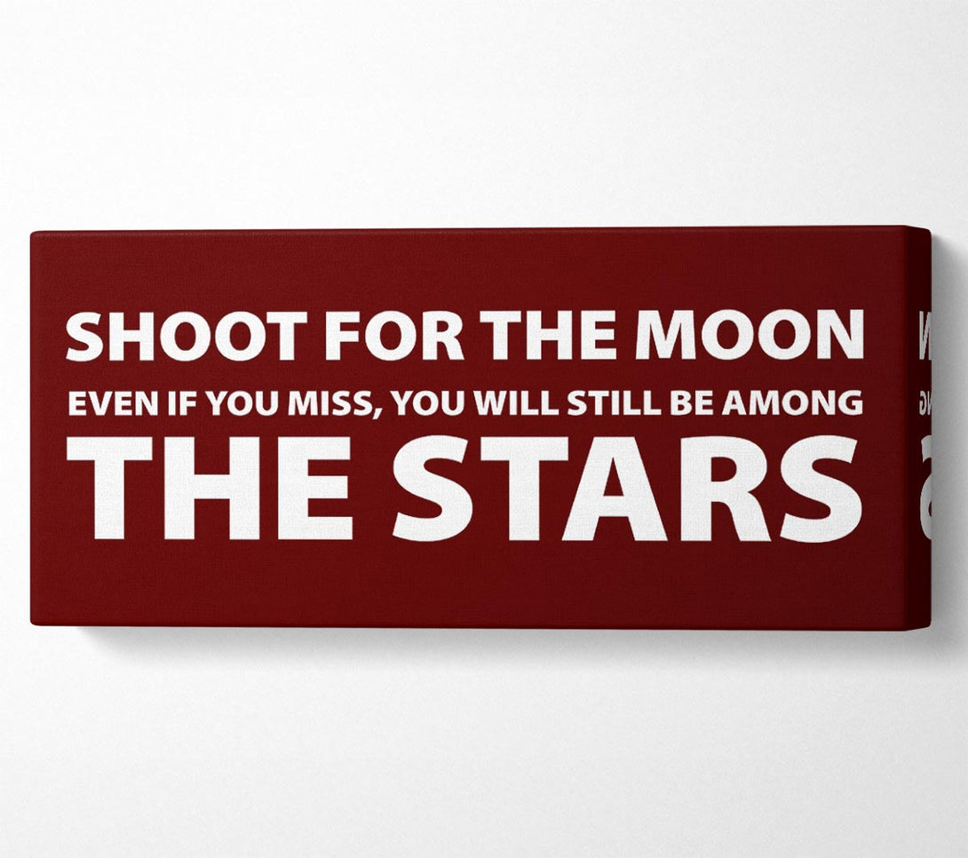 Motivational Quote Shoot For The Moon canvas, printed on coated polyester canvas. Mounted on to a 44mm box frame, ready to hang.