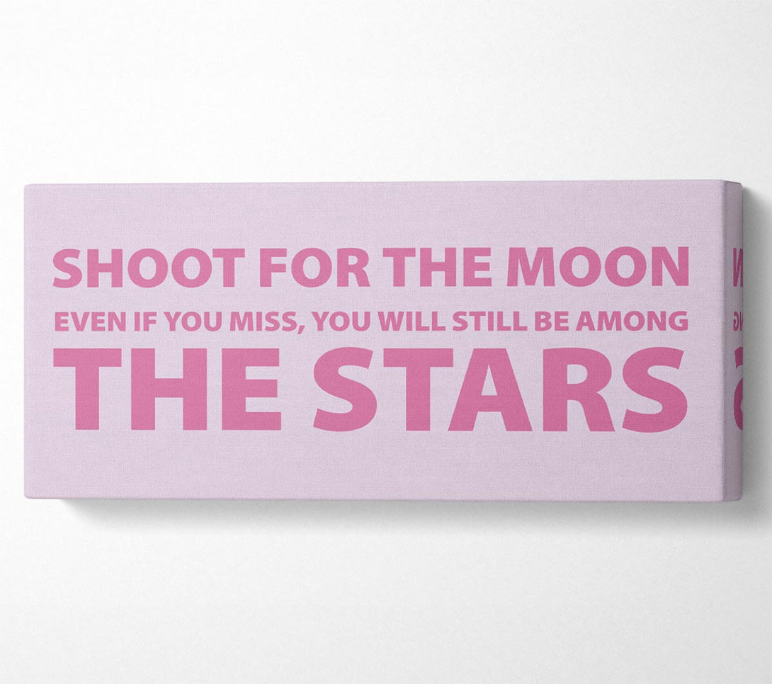 Motivational Quote Shoot For The Moon Pink canvas, printed on coated polyester canvas. Mounted on to a 44mm box frame, ready to hang.