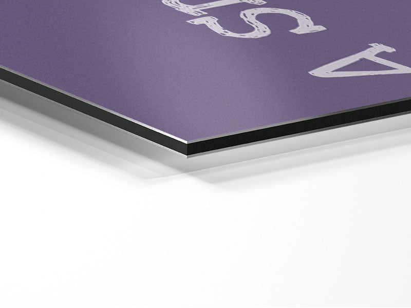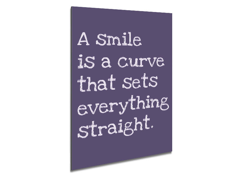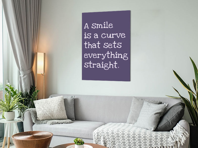 Motivational Quote Smile Is A Curve Lilac Printed on brushed aluminium dibond. A modern way to display art and easy to maintain.