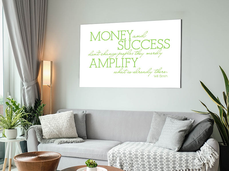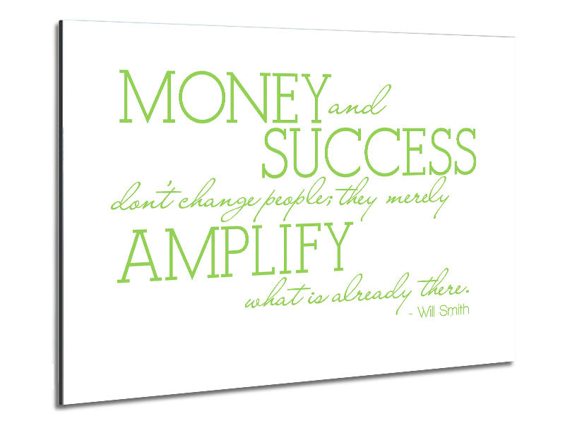 Motivational Quote Will Smith Money And Success Lime Green Printed on brushed aluminium dibond. A modern way to display art and easy to maintain.